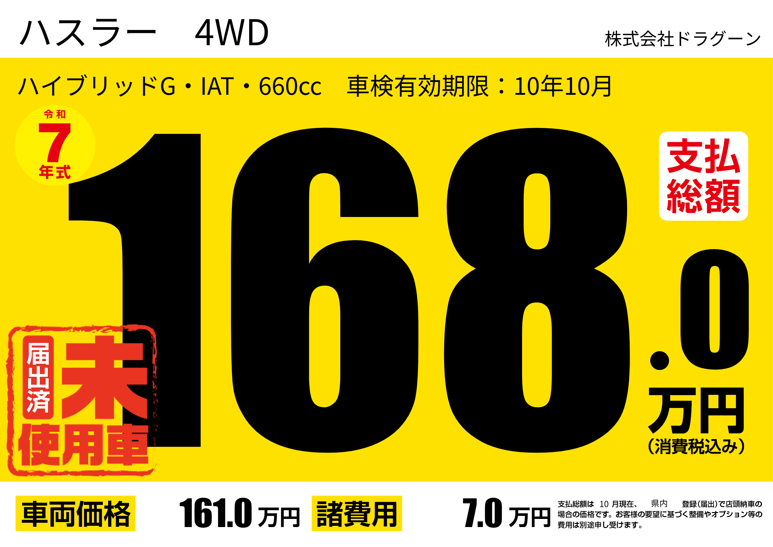 | 車名 | ハスラー 4WD | グレード ミッション 排気量 |