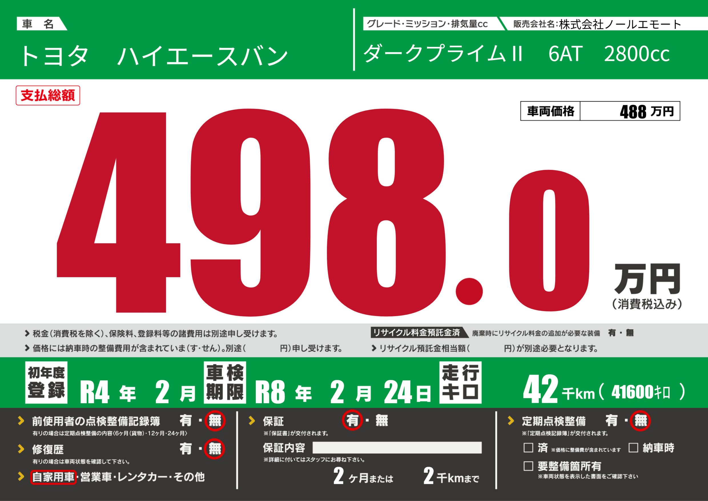 | 走行キロ | 4.2万km | 初年度登録 | R4年2月 |
