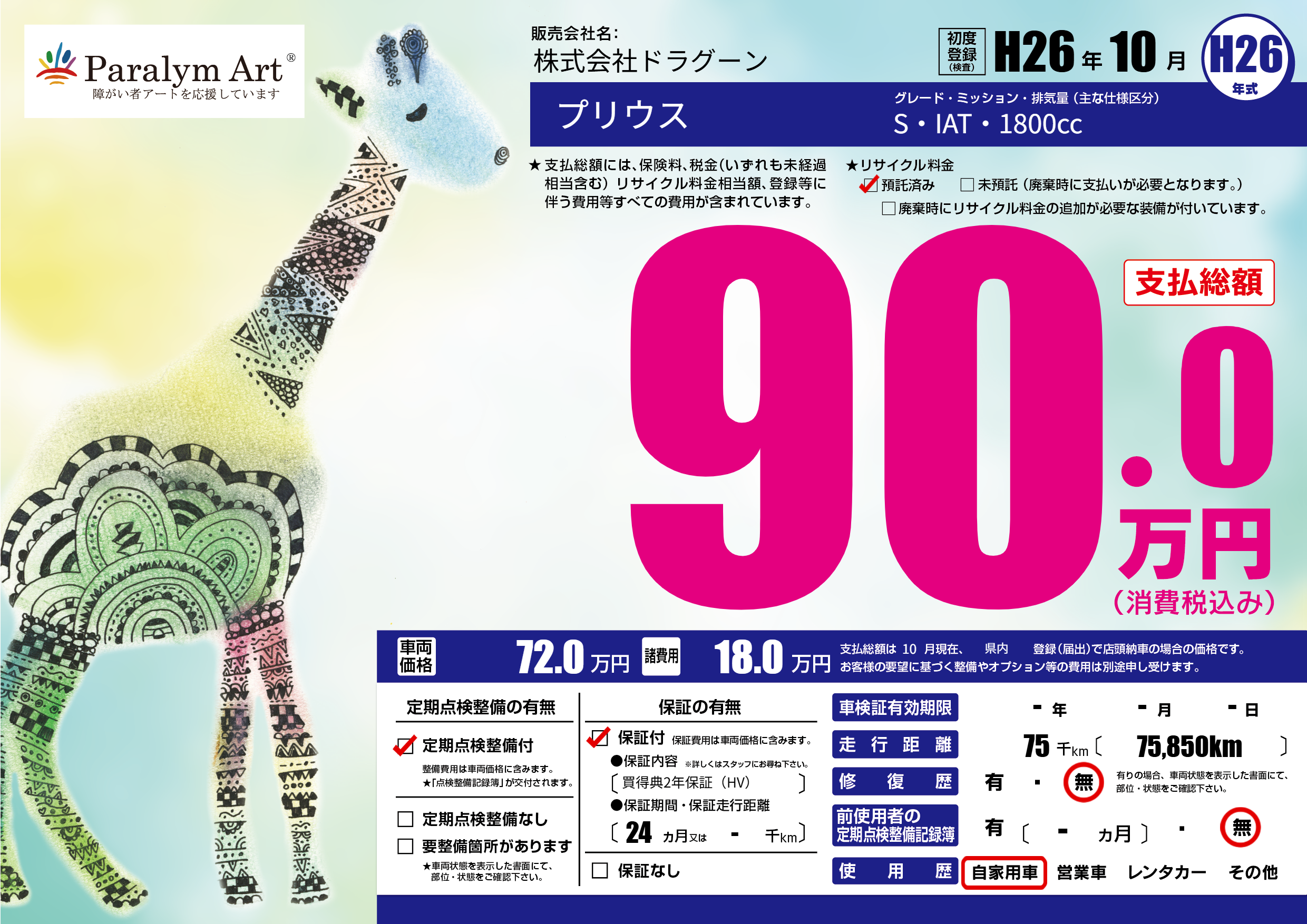 | 車名 | プリウス | グレード ミッション 排気量 |