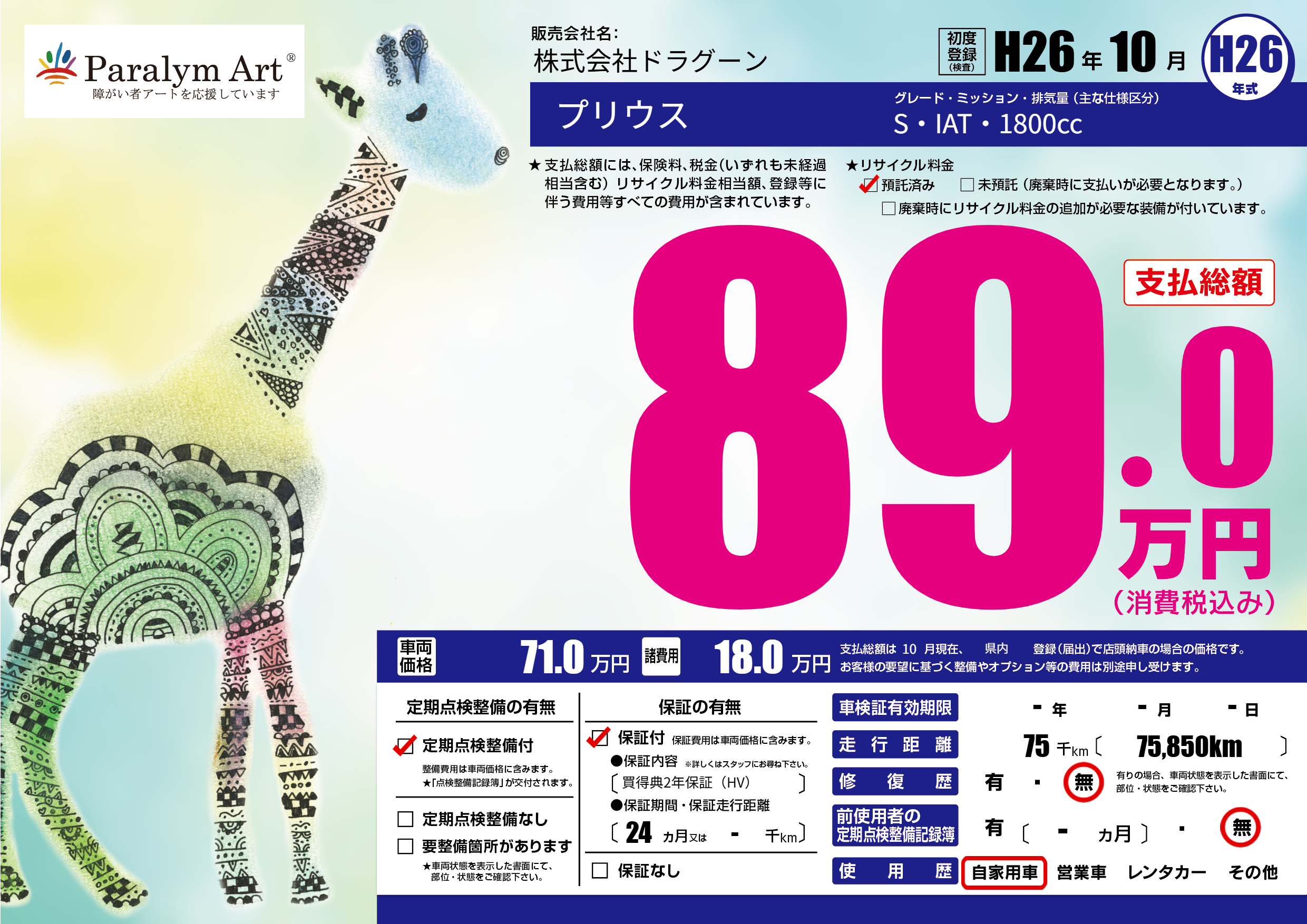 | 車名 | プリウス | グレード ミッション 排気量 |