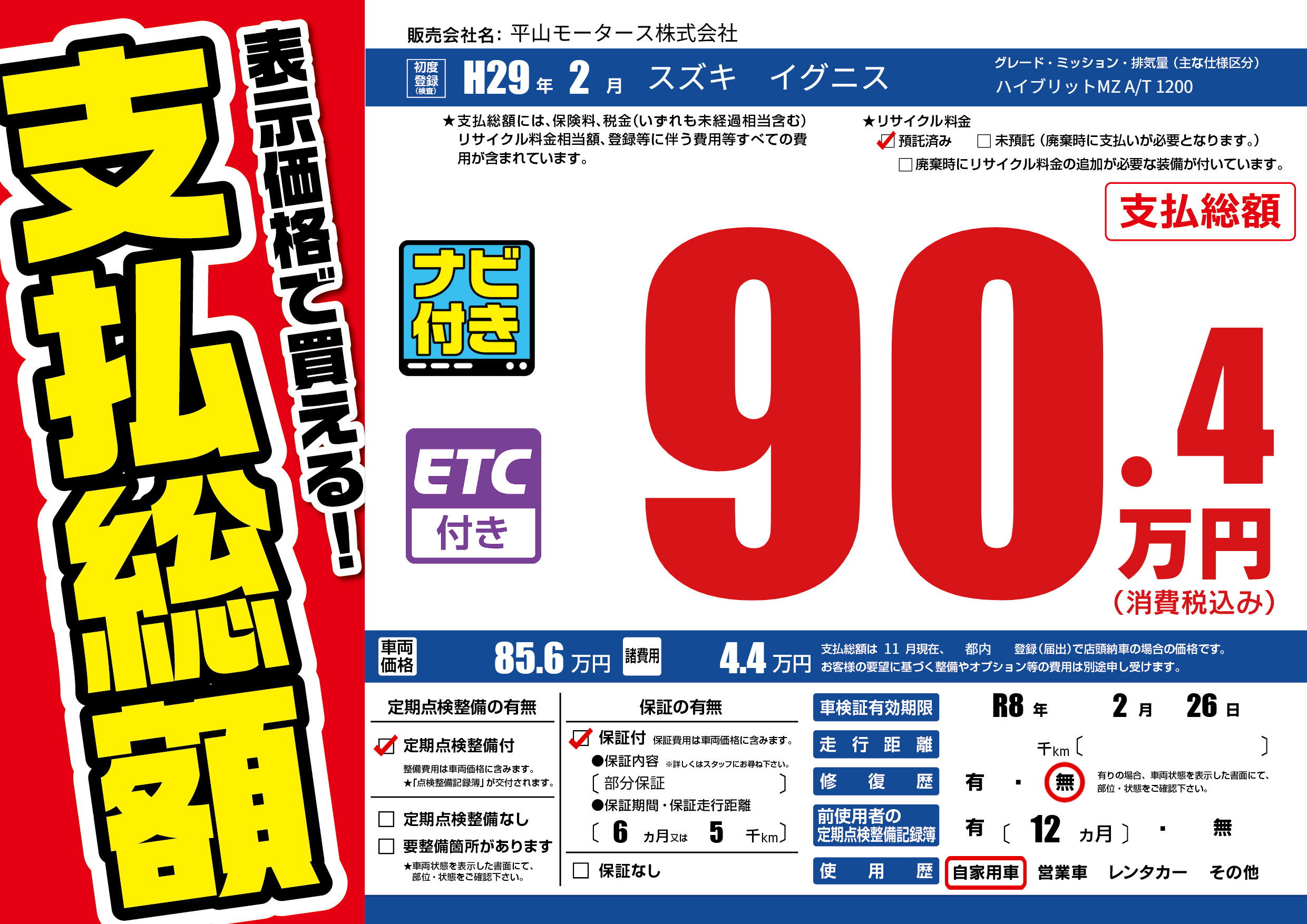 | 走行キロ | - | 初年度登録 | H29年2月 |