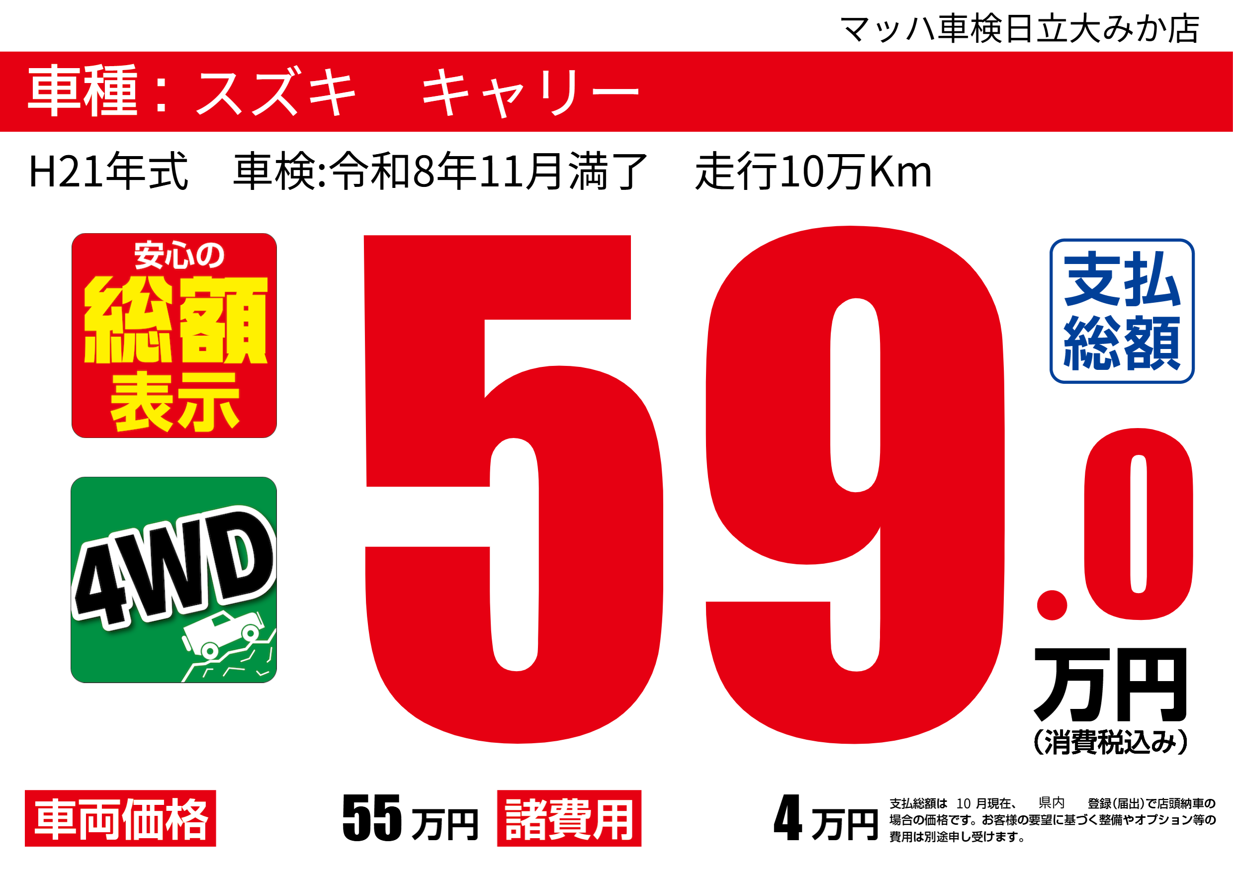 | 車名 | スズキ キャリー | グレード ミッション 排気量 |