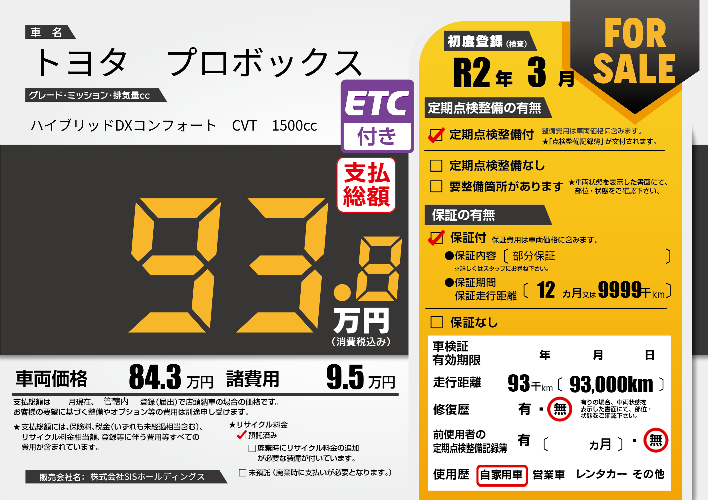 | 走行キロ | 9.3万km | ||