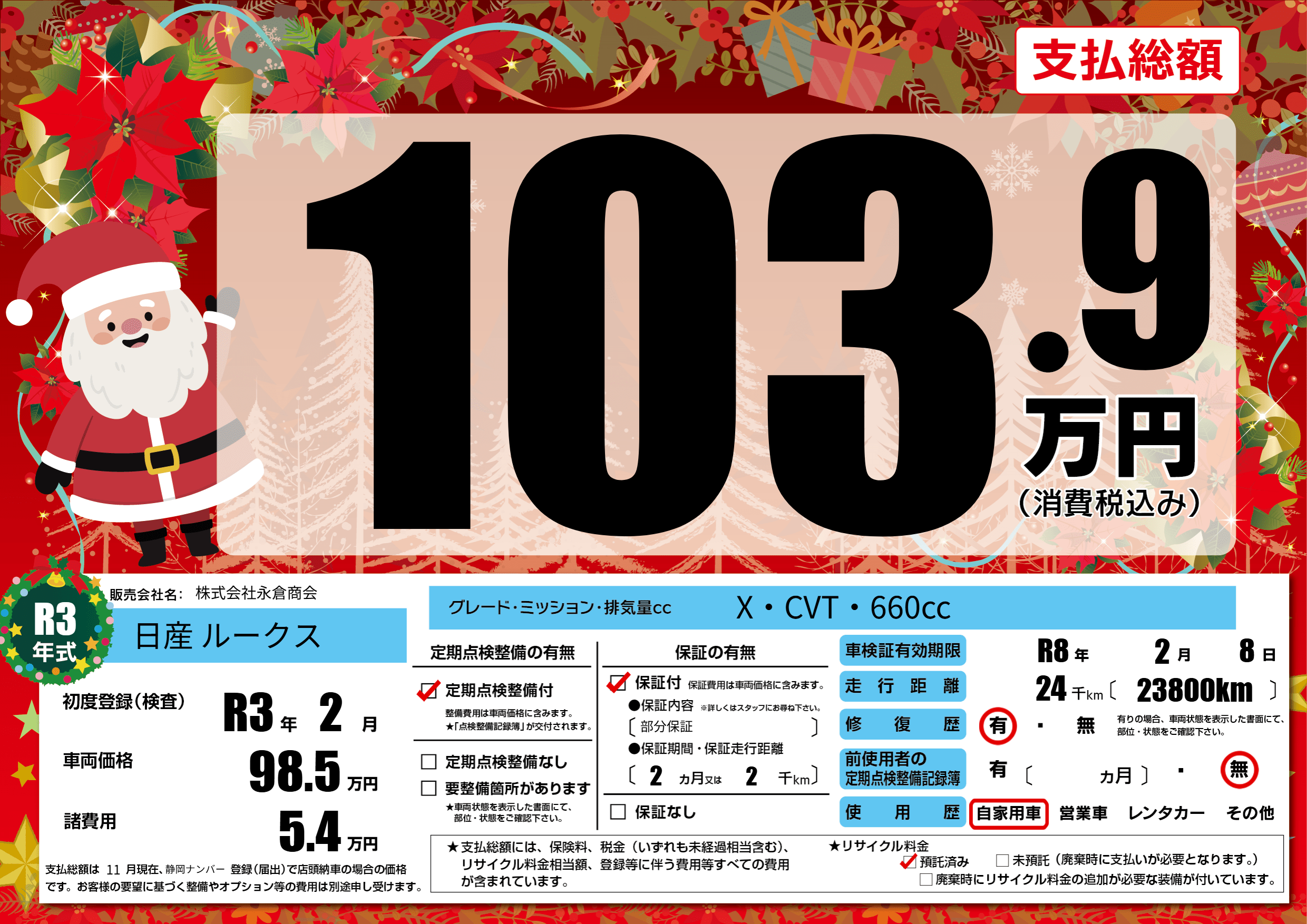 | 車名 | 日産 ルークス | グレード ミッション 排気量 |