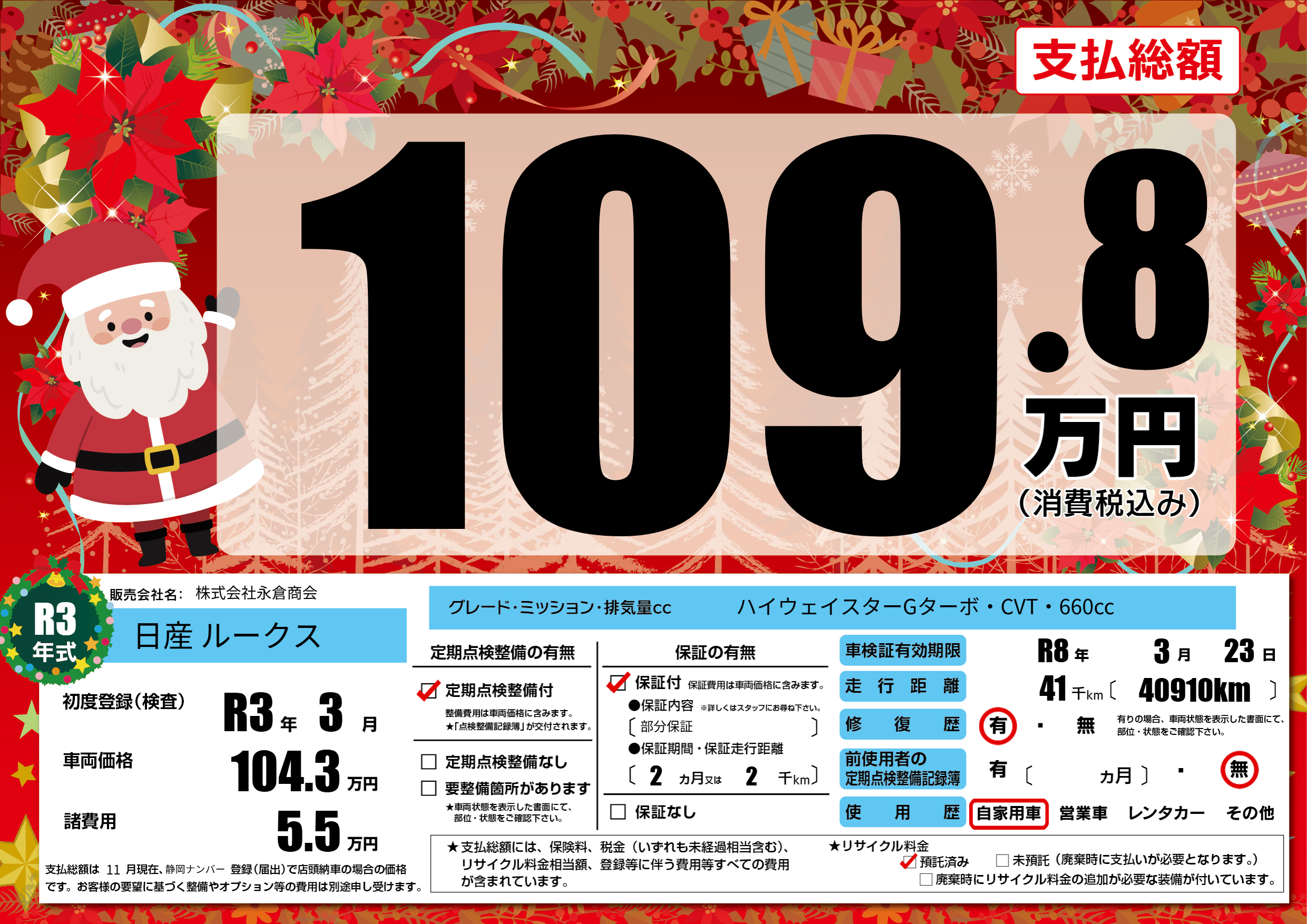 | 走行キロ | 4.1万km | 初年度登録 | R3年3月 |