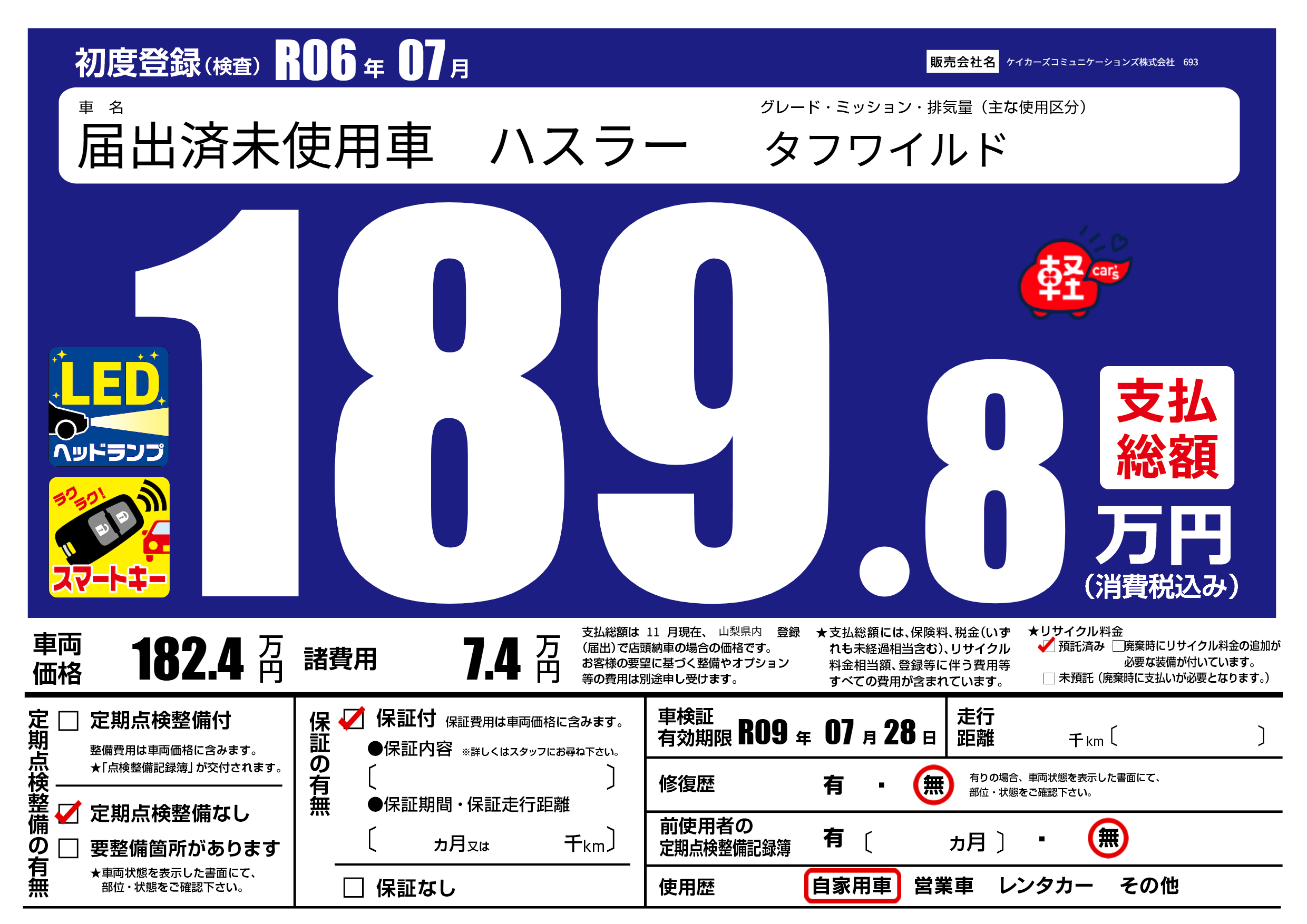 なし | 車検制限 | R09年07月28月 |
