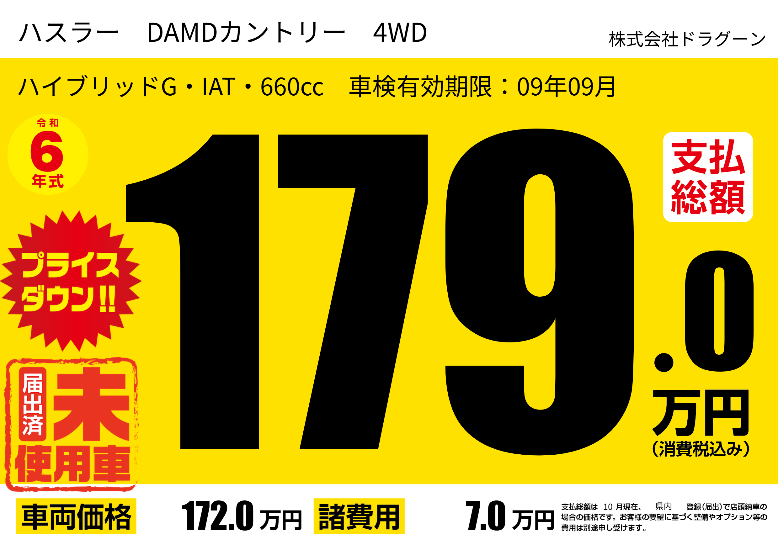 | 車名 | ハスラー DAMDカントリー 4WD | グレード ミッション 排気量 |