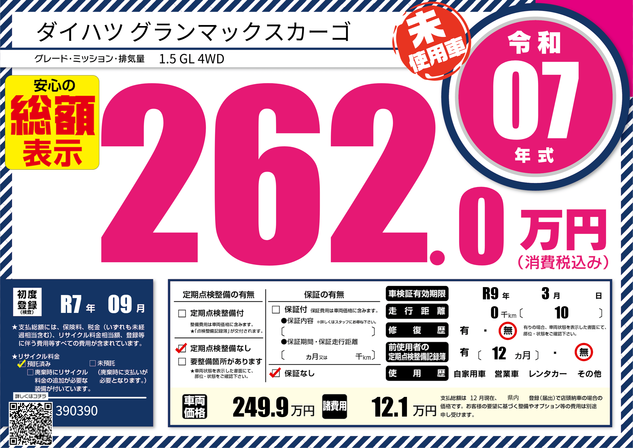 | 車名 | ダイハツ グランマックスカーゴ | グレード ミッション 排気量 |
