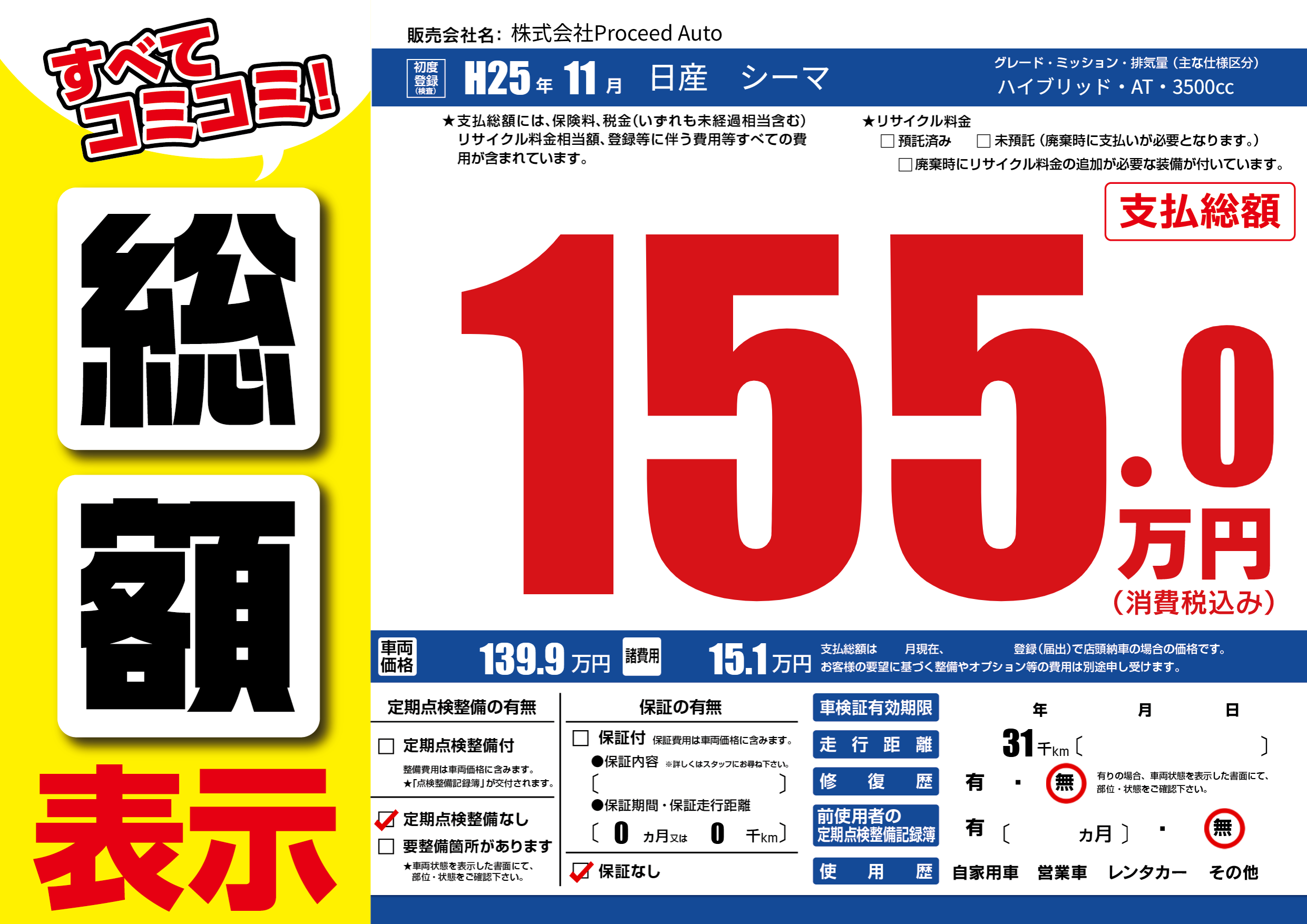 | 定期点検整備 | 定期点検整備なし | ||
