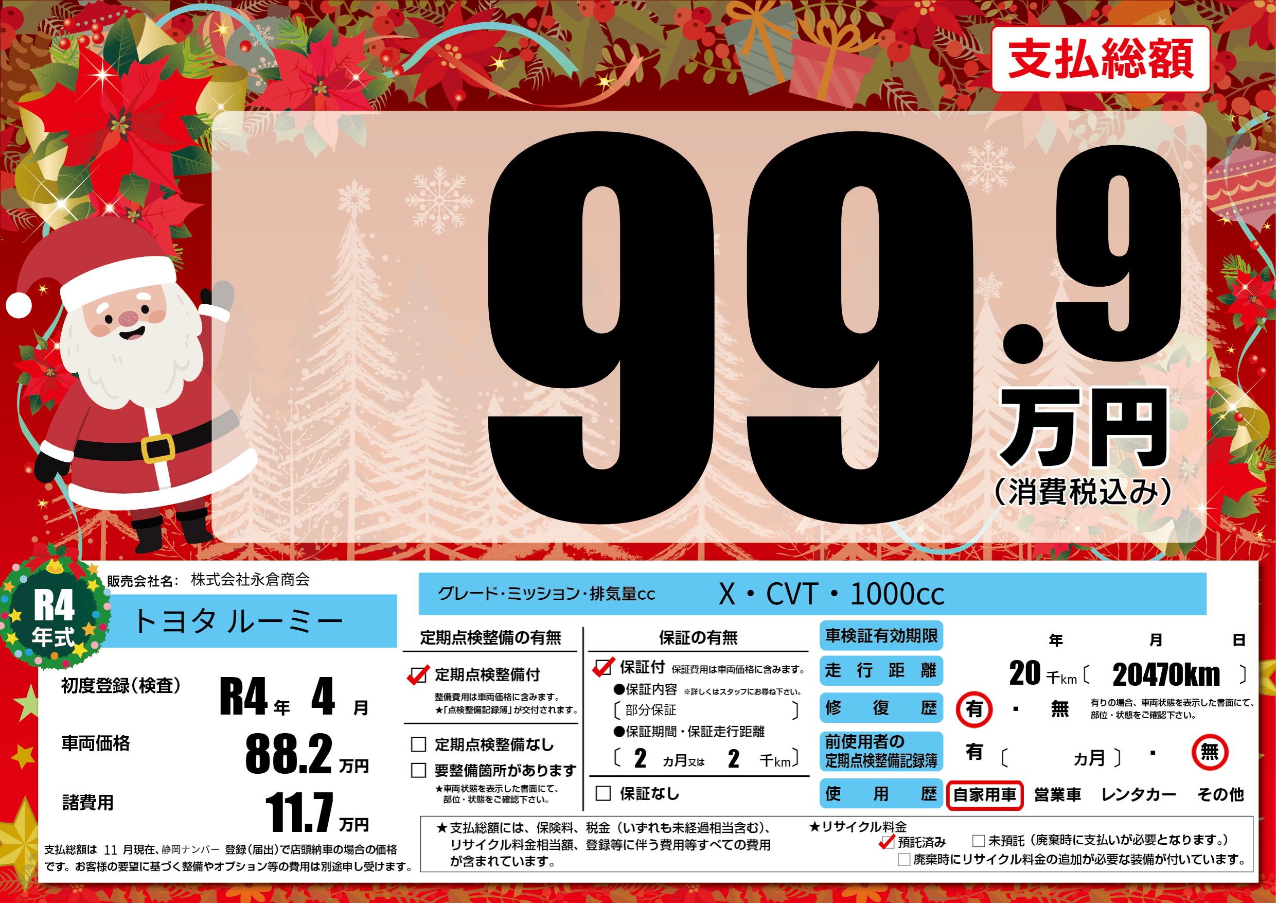 | 走行キロ | 2万km | 初年度登録 | R4年4月 |