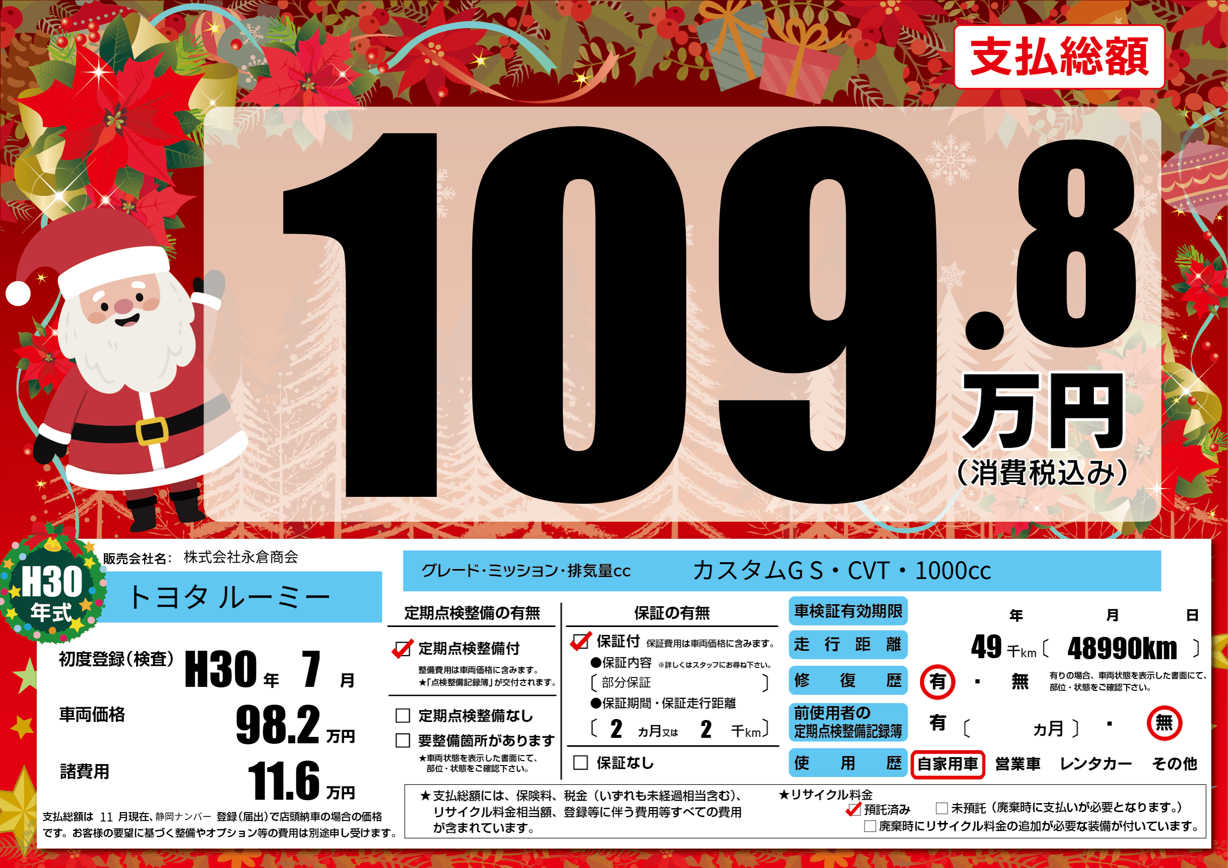 | 走行キロ | 4.9万km | 初年度登録 | H30年7月 |