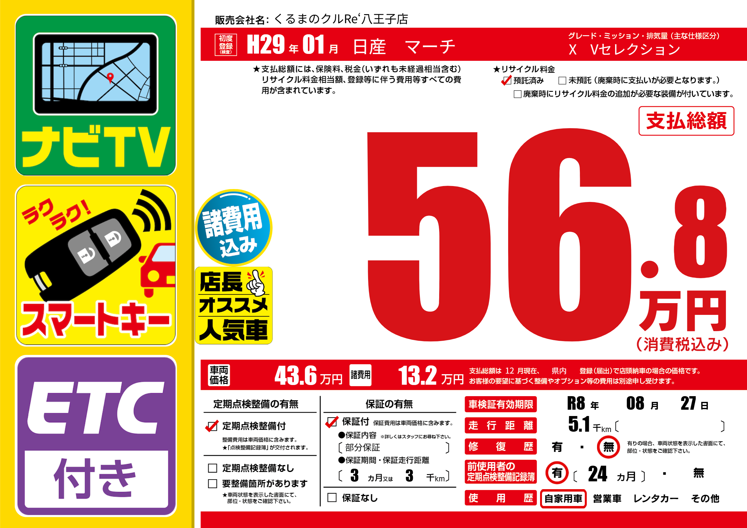 車検制限 R8年 08月 27日