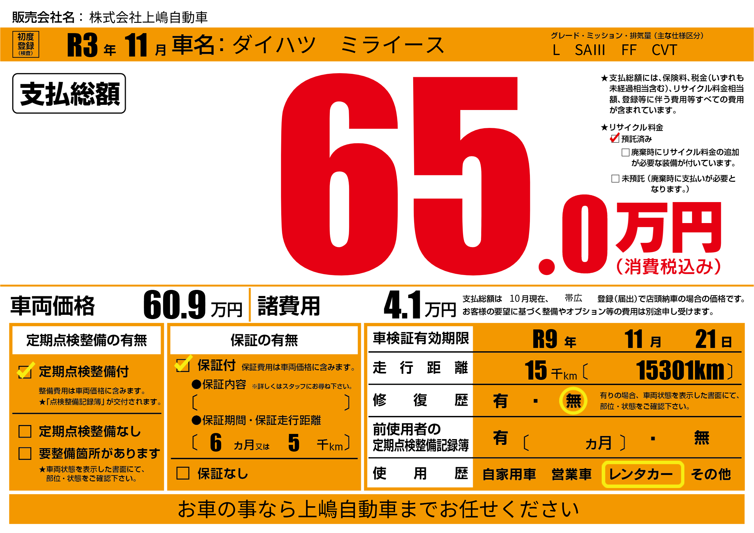 なし | 車検制限 | R9年11月21月 |