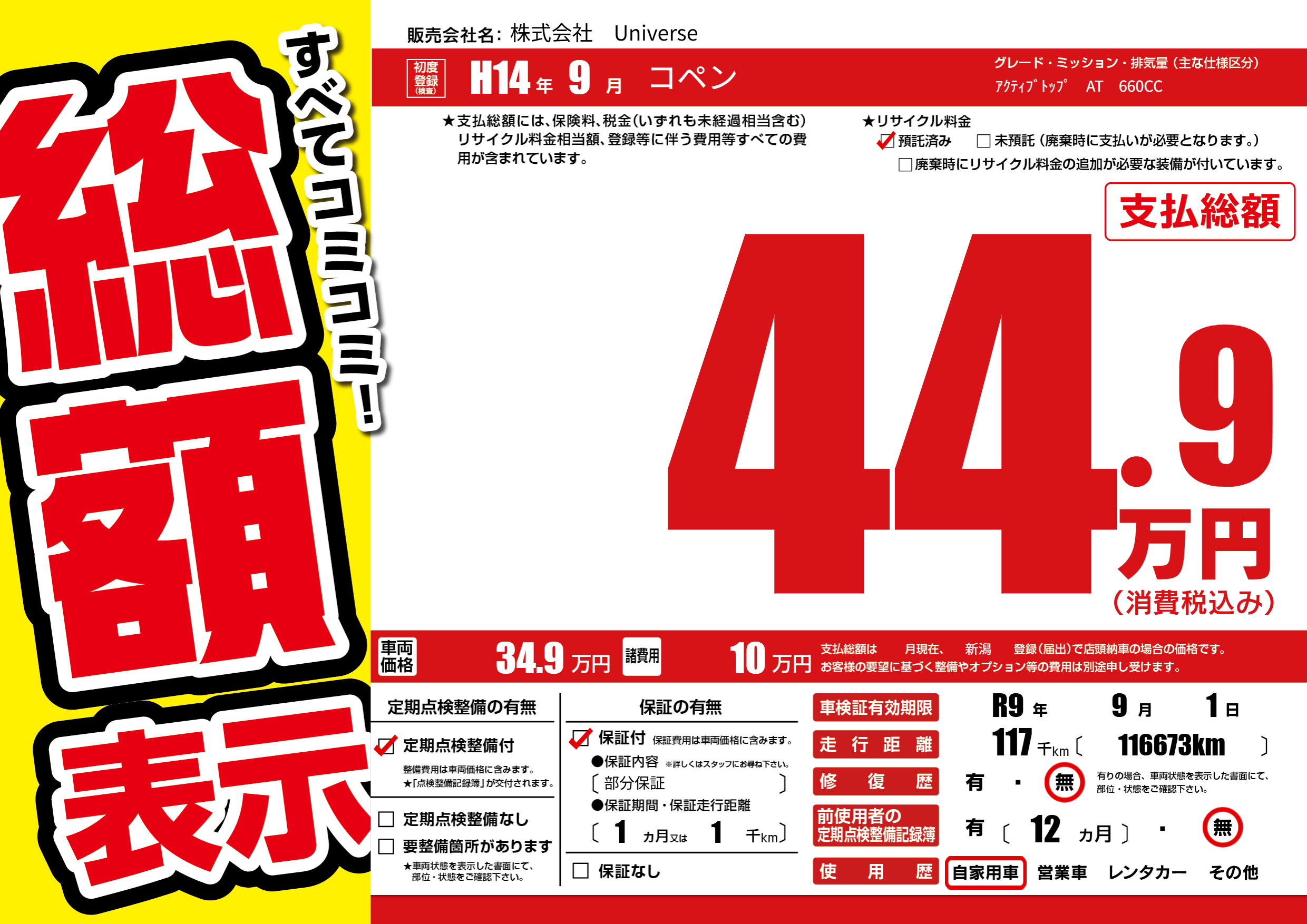 | 定期点検整備 | 定期点検整備あり | ||