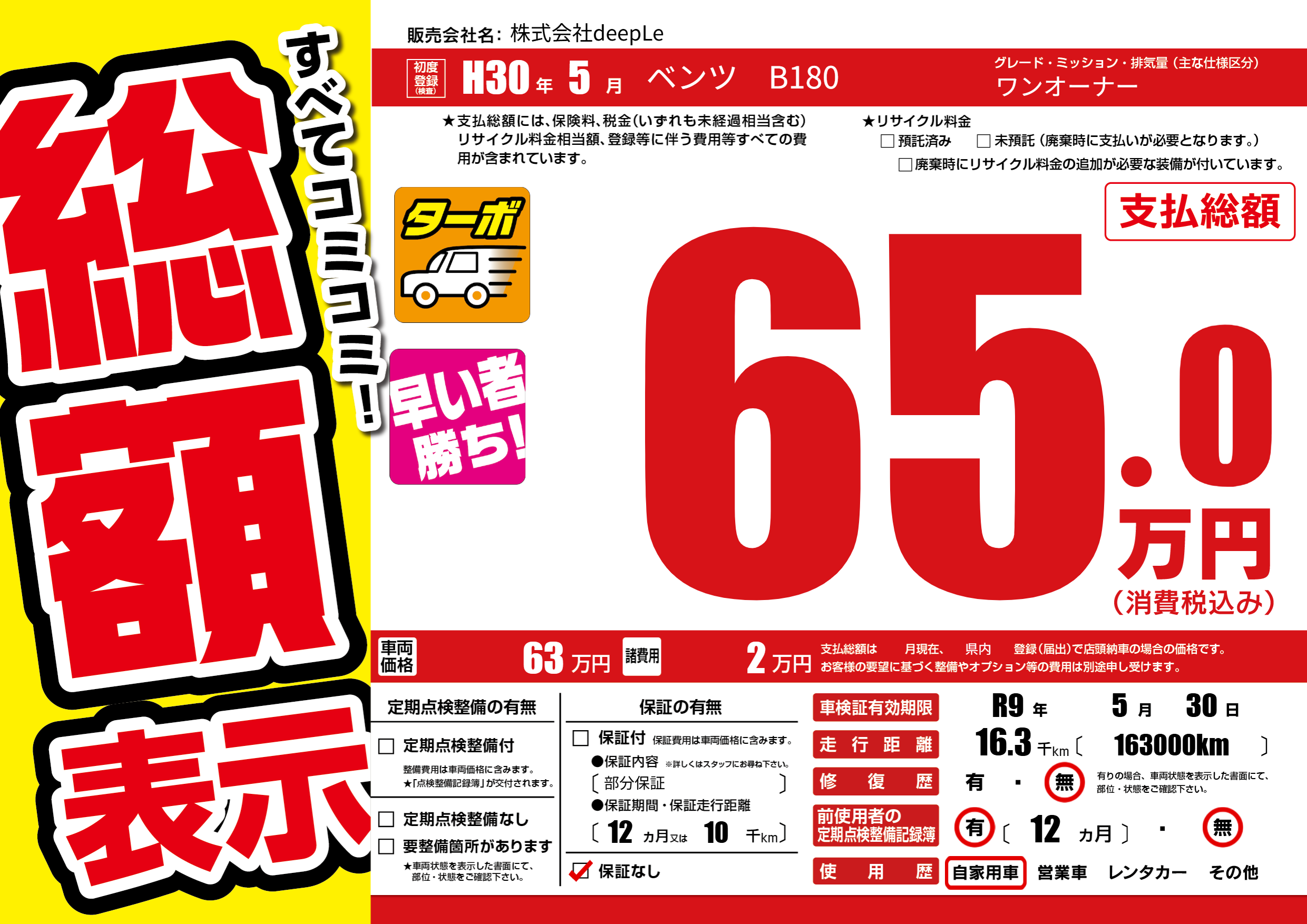 | 車名 | ベンツ B180 | グレード ミッション 排気量 |