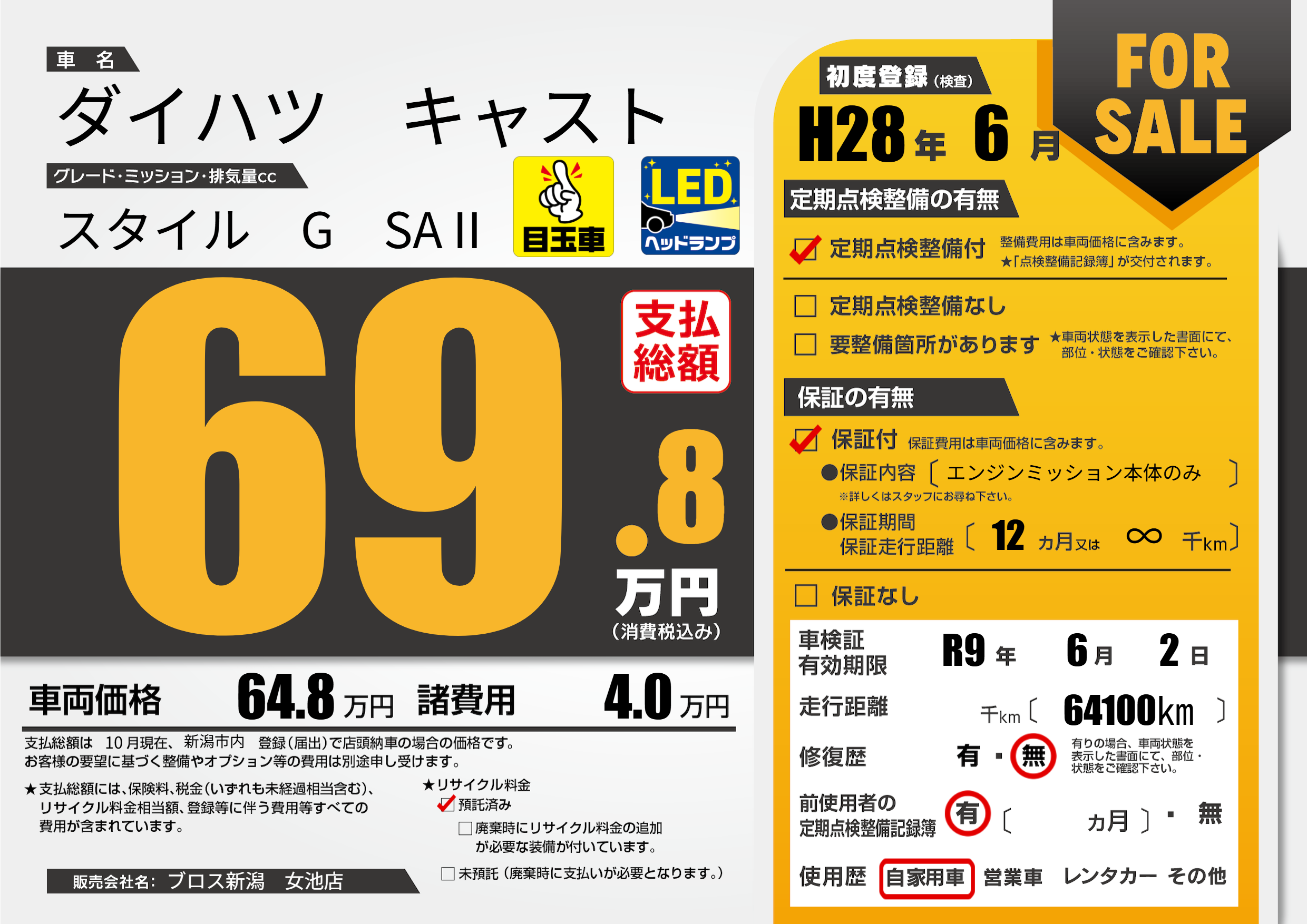 なし | 車検制限 | R9年6月2月 |