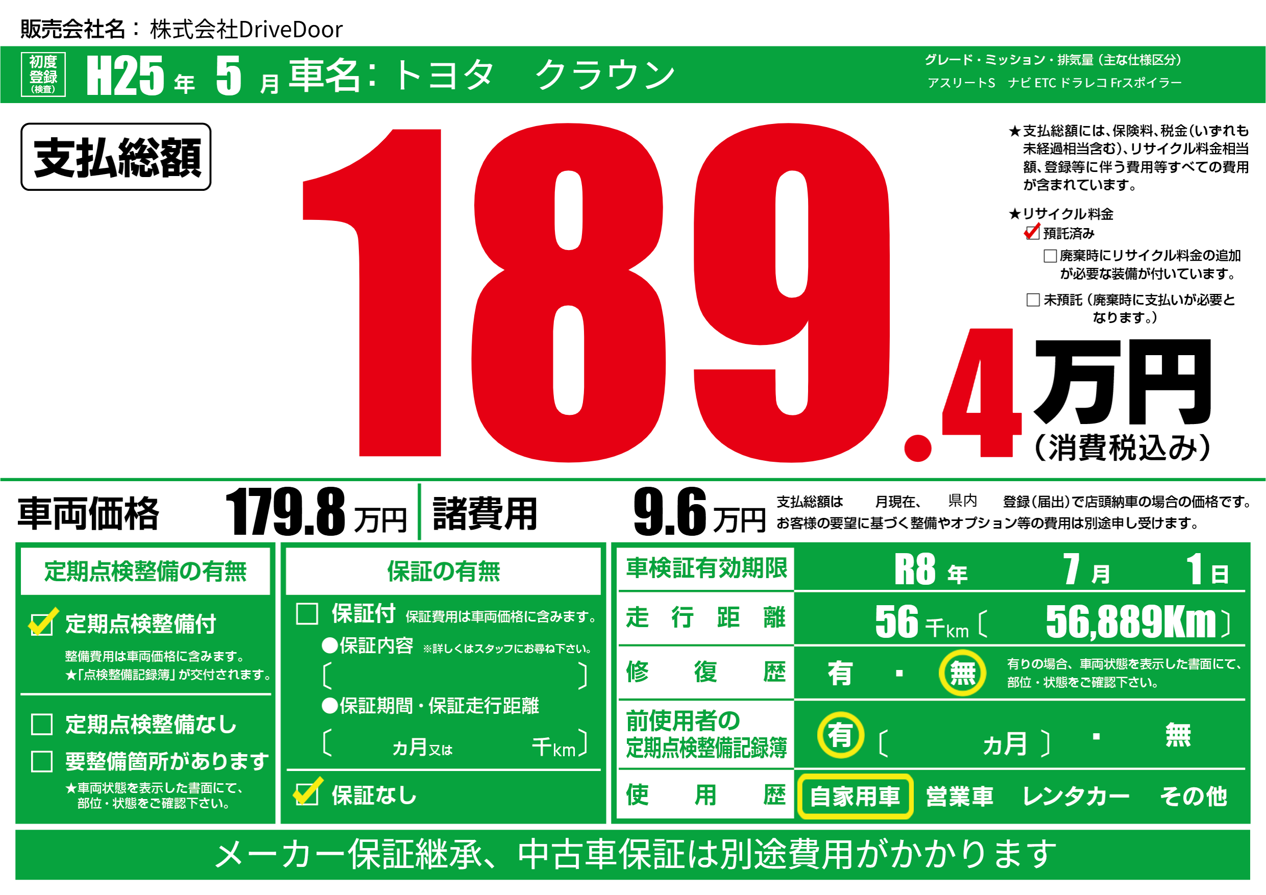 | リサイクル料金 預託済 |