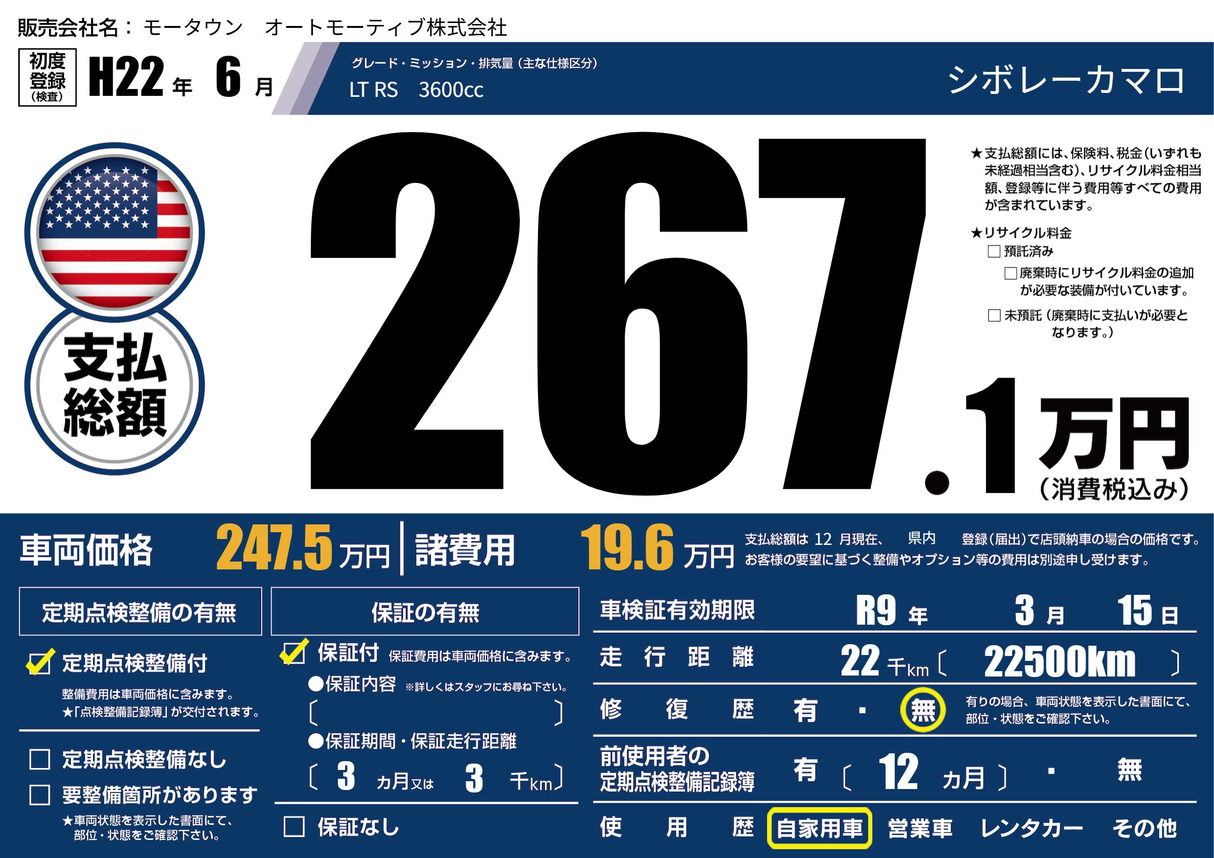 | 車検制限 | R9年 3月 15日 | ||