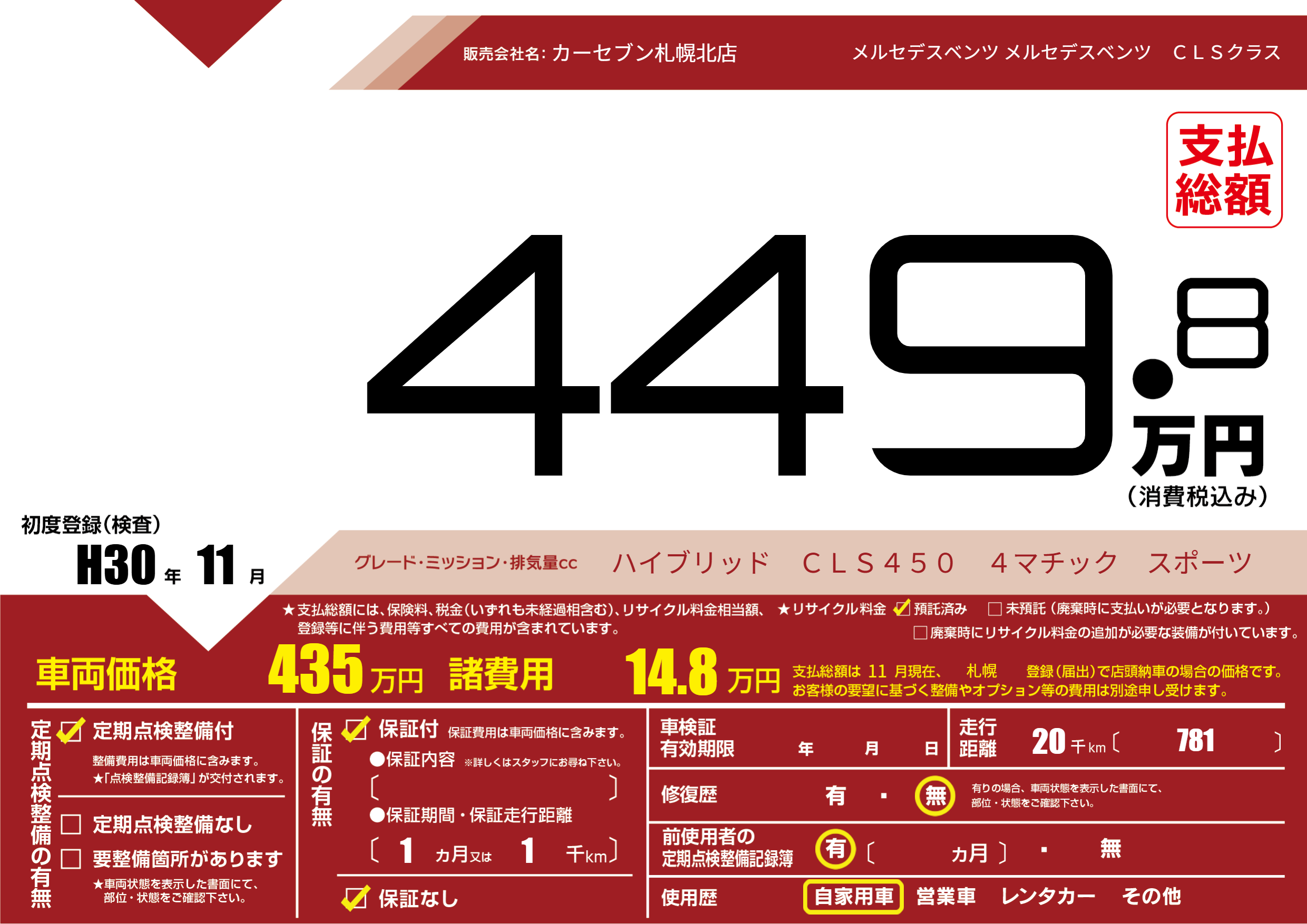 | 初年度登録 | H30年11月 | ||