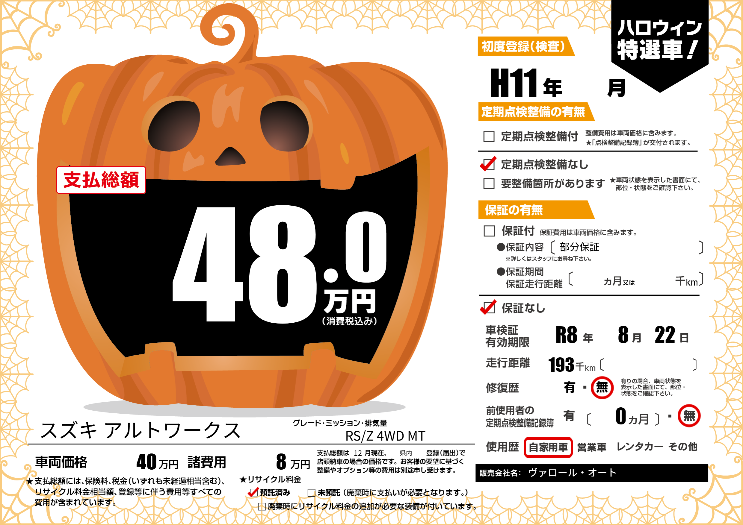 なし | 車検制限 | R8年8月22月 |