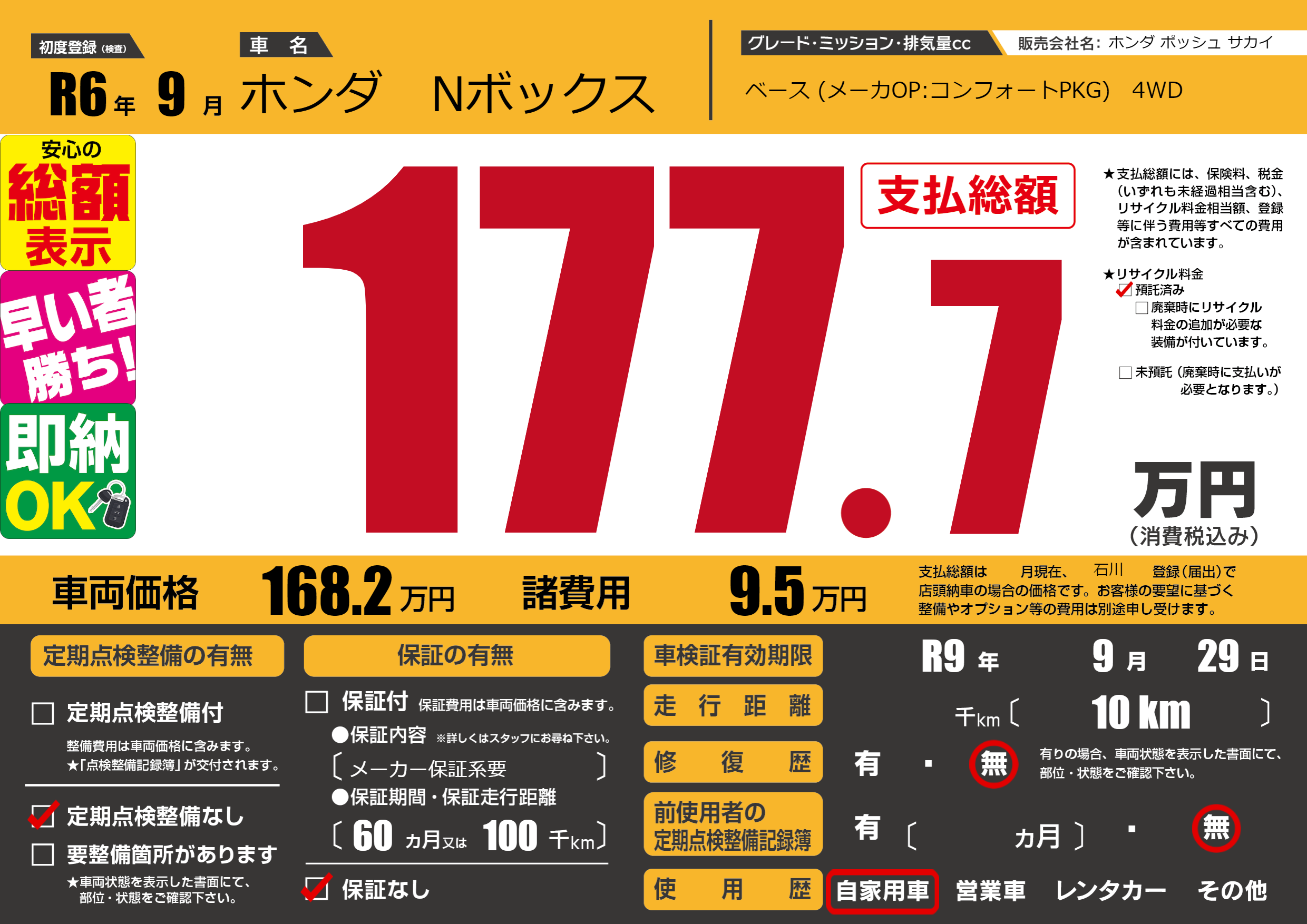 なし | 車検制限 | R9年9月29月 |