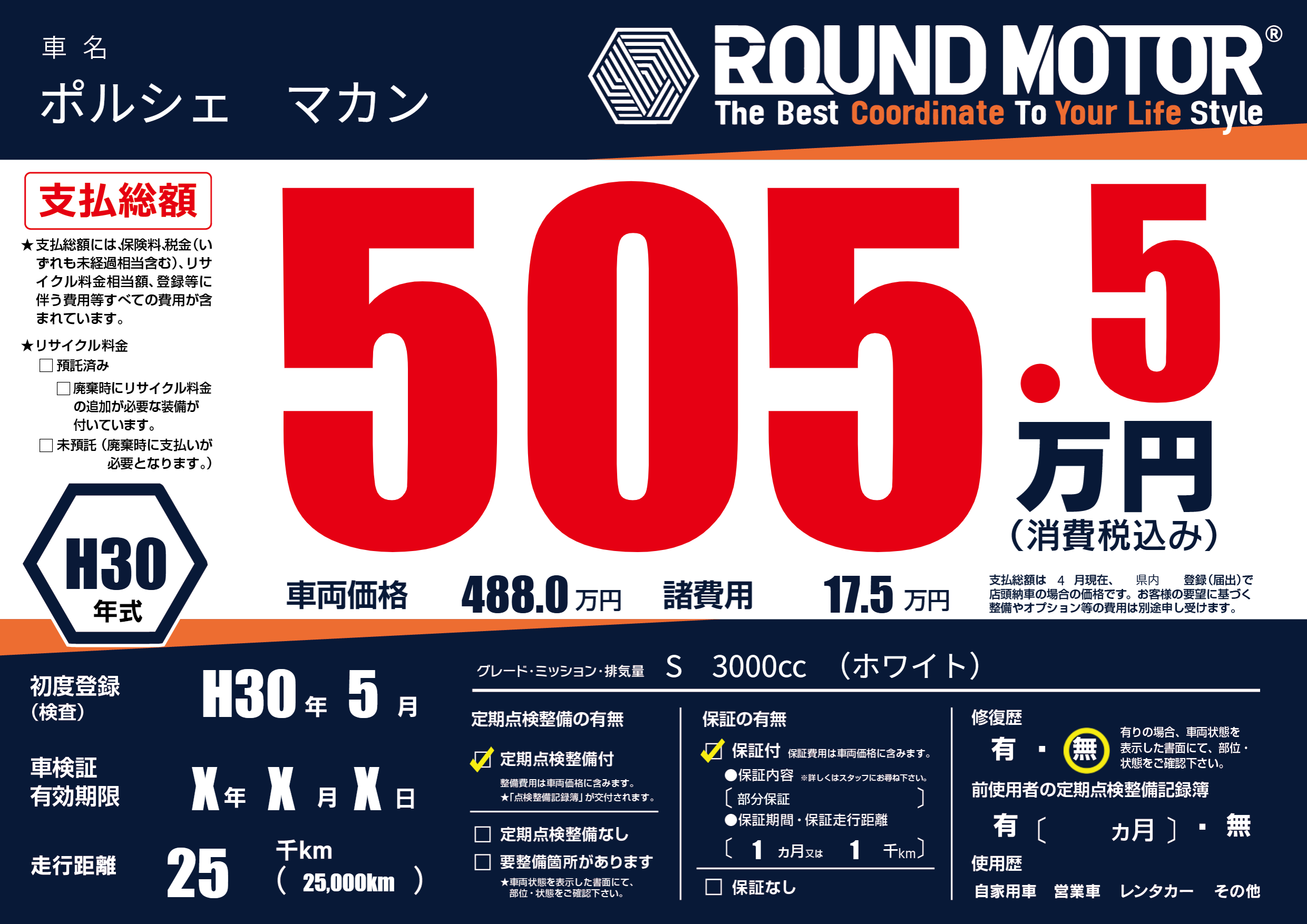| 車名 | ポルシェ マカン | グレード ミッション 排気量 |