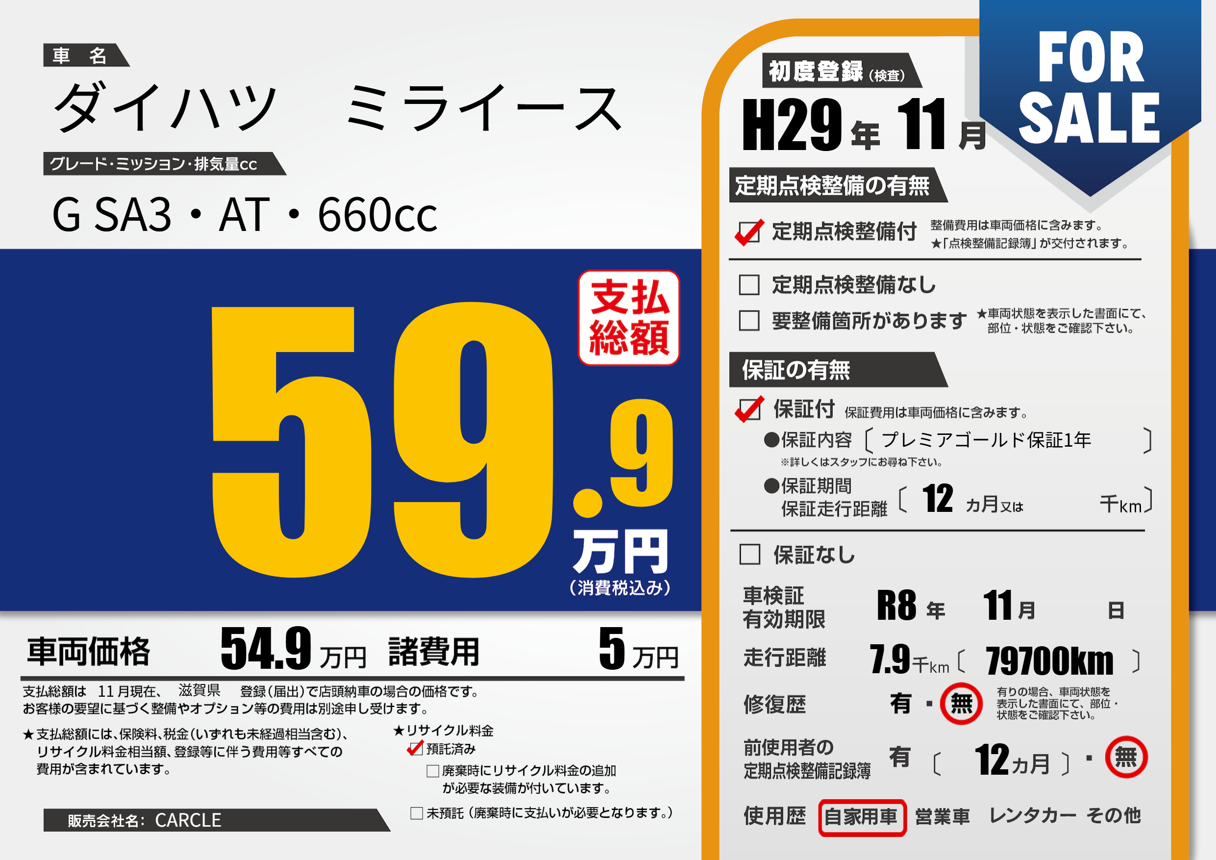 | 車検制限 | R8年 11月 - 日 | ||