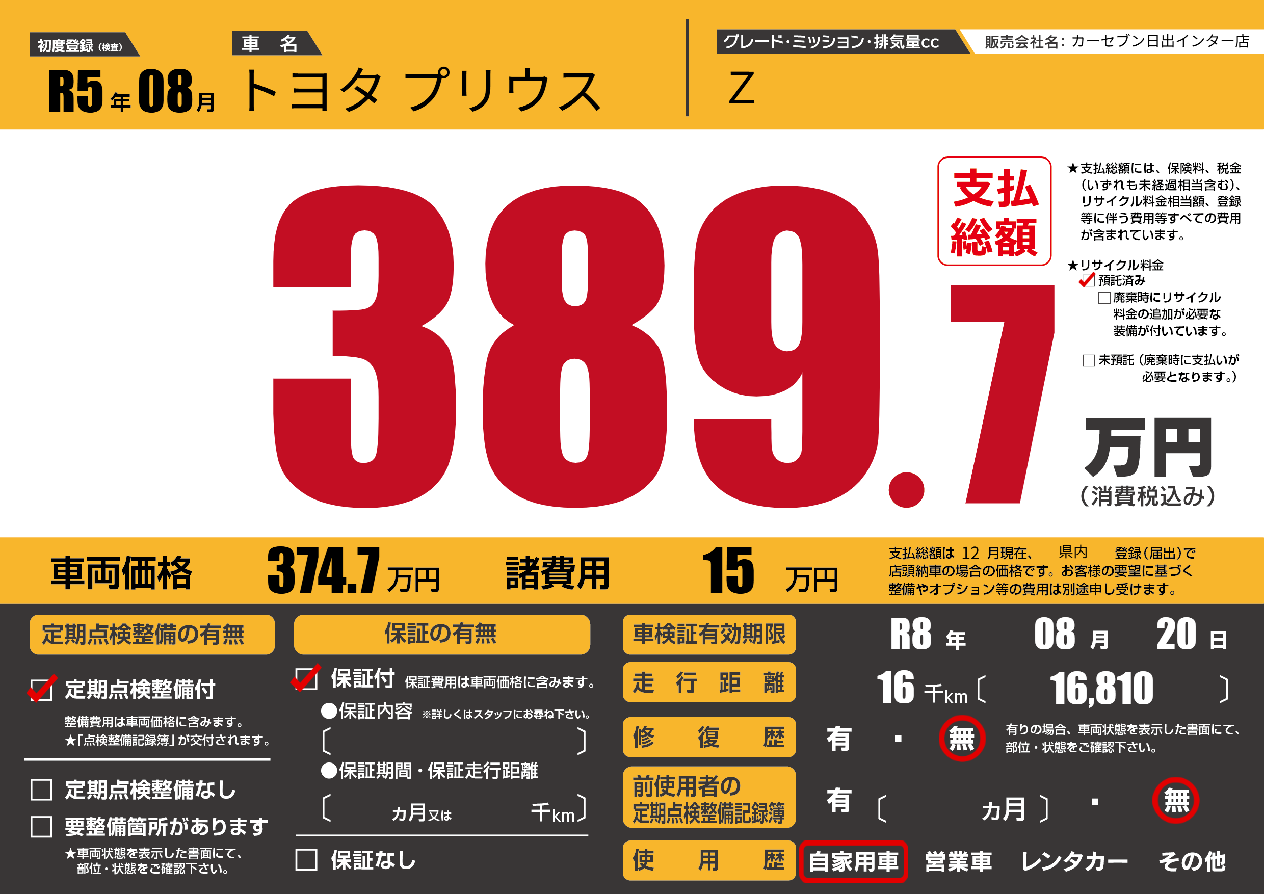 | 定期点検整備 | 定期点検整備あり | ||