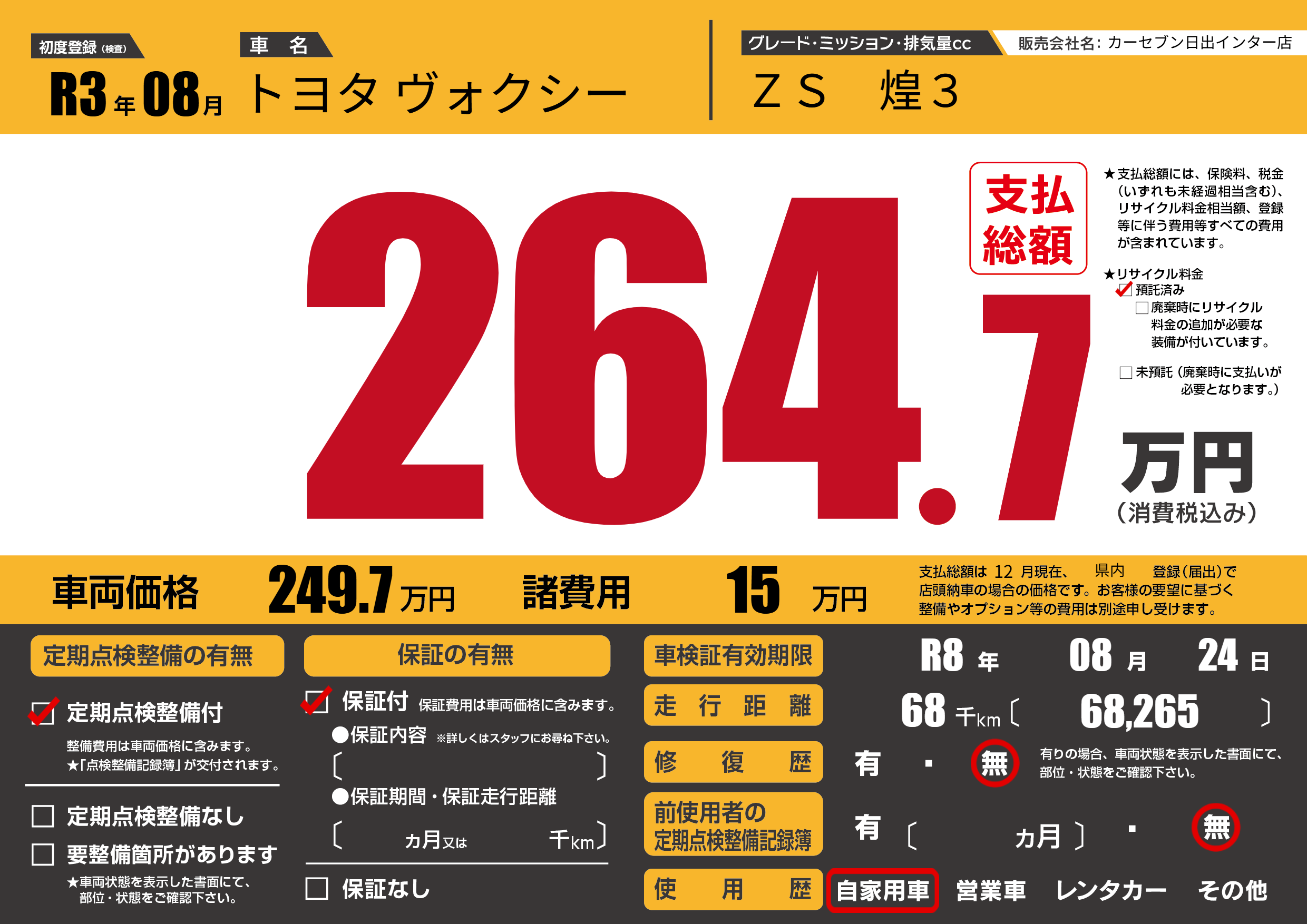 | 走行キロ | 6.8万km | 初年度登録 | R3年08月 |