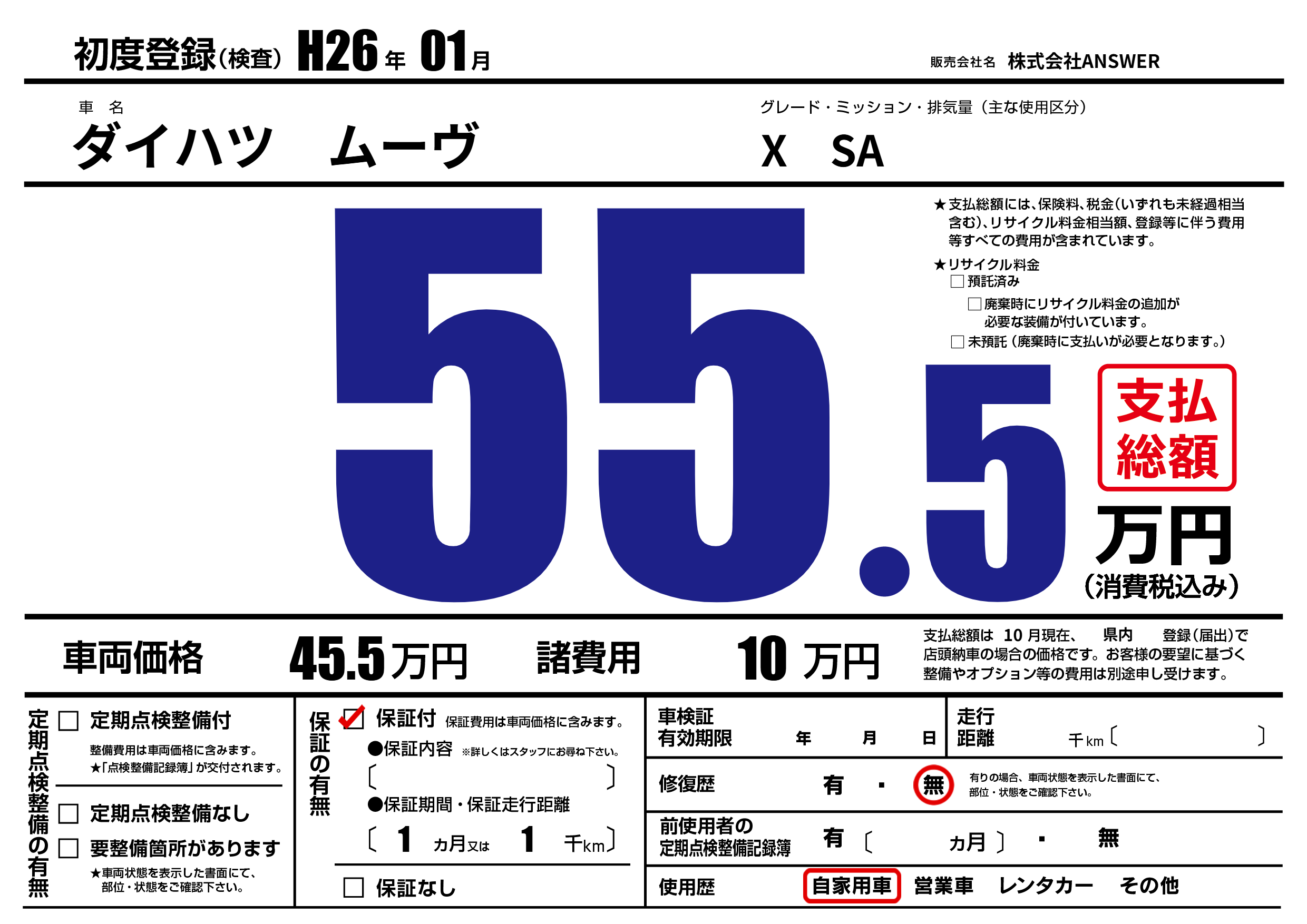 初年度登録 H26年01月