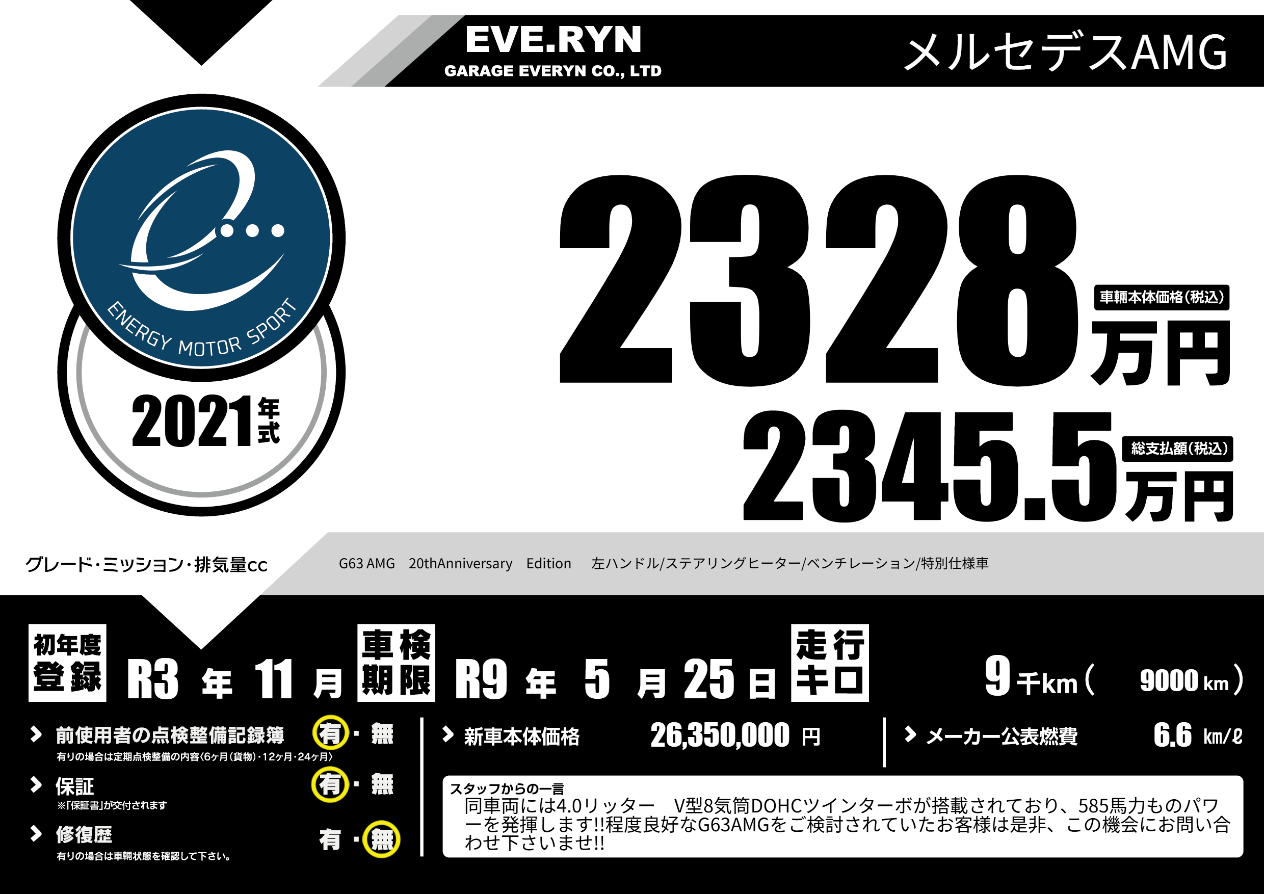 G63 AMG 20thAnniversary Edition 左ハンドル/ステアリングヒーター/ベンチレーション/特別仕様車 |