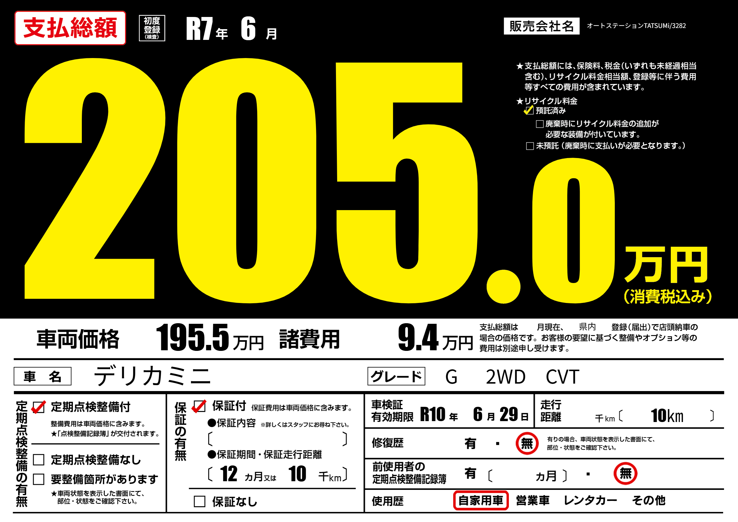 | 走行キロ | - | 初年度登録 | R7年6月 |