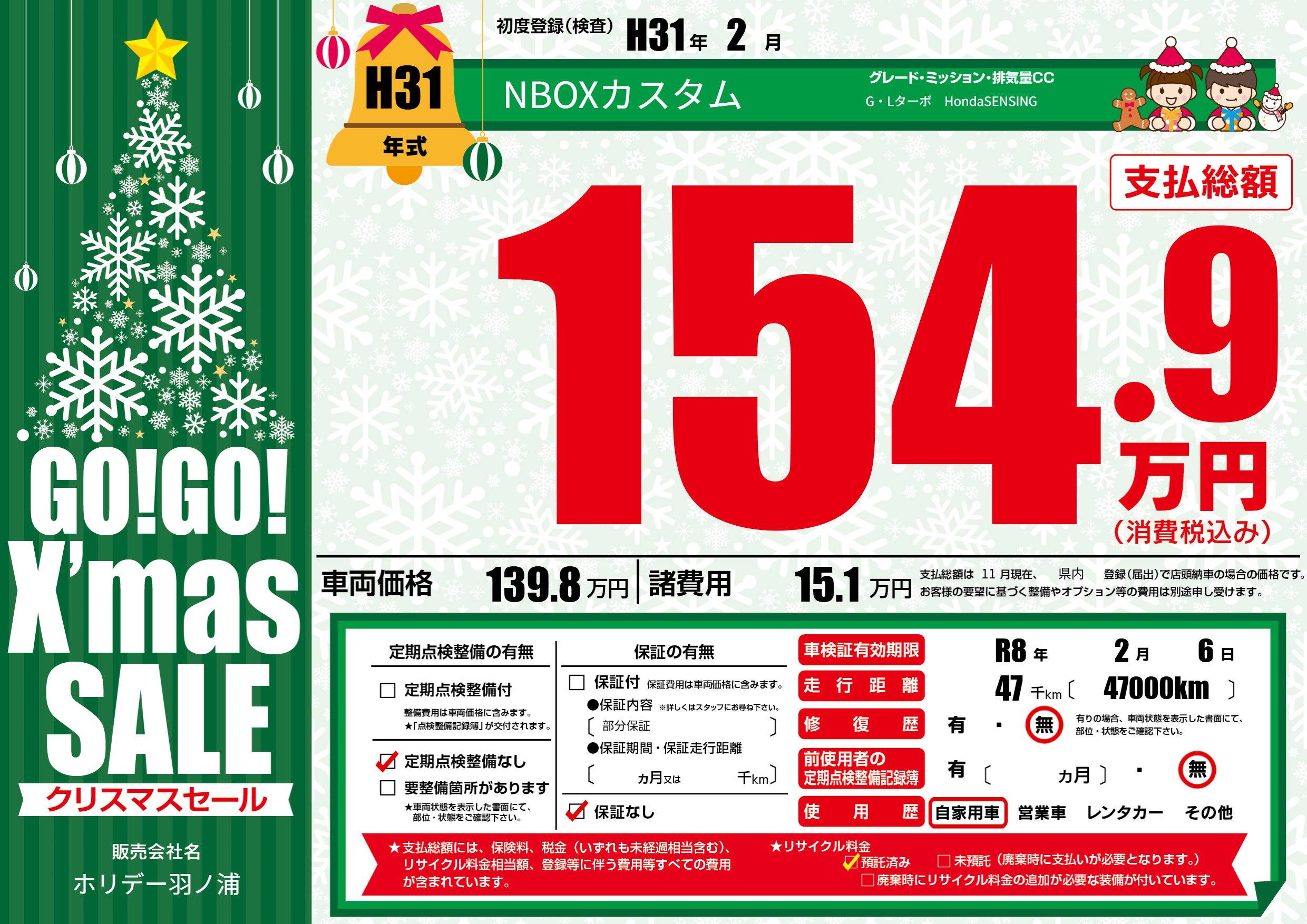 | 定期点検整備 | 定期点検整備なし | ||