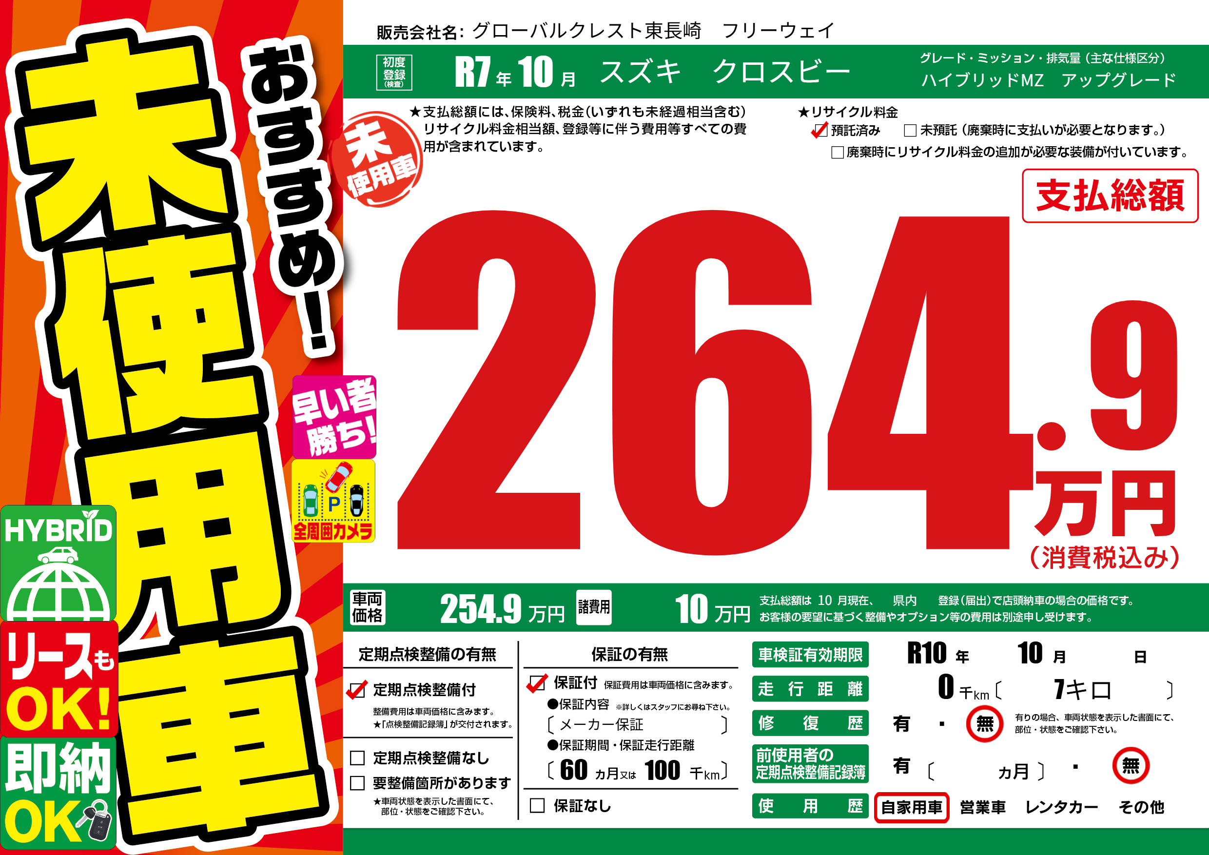 | 走行キロ | - | 初年度登録 | R7年10月 |
