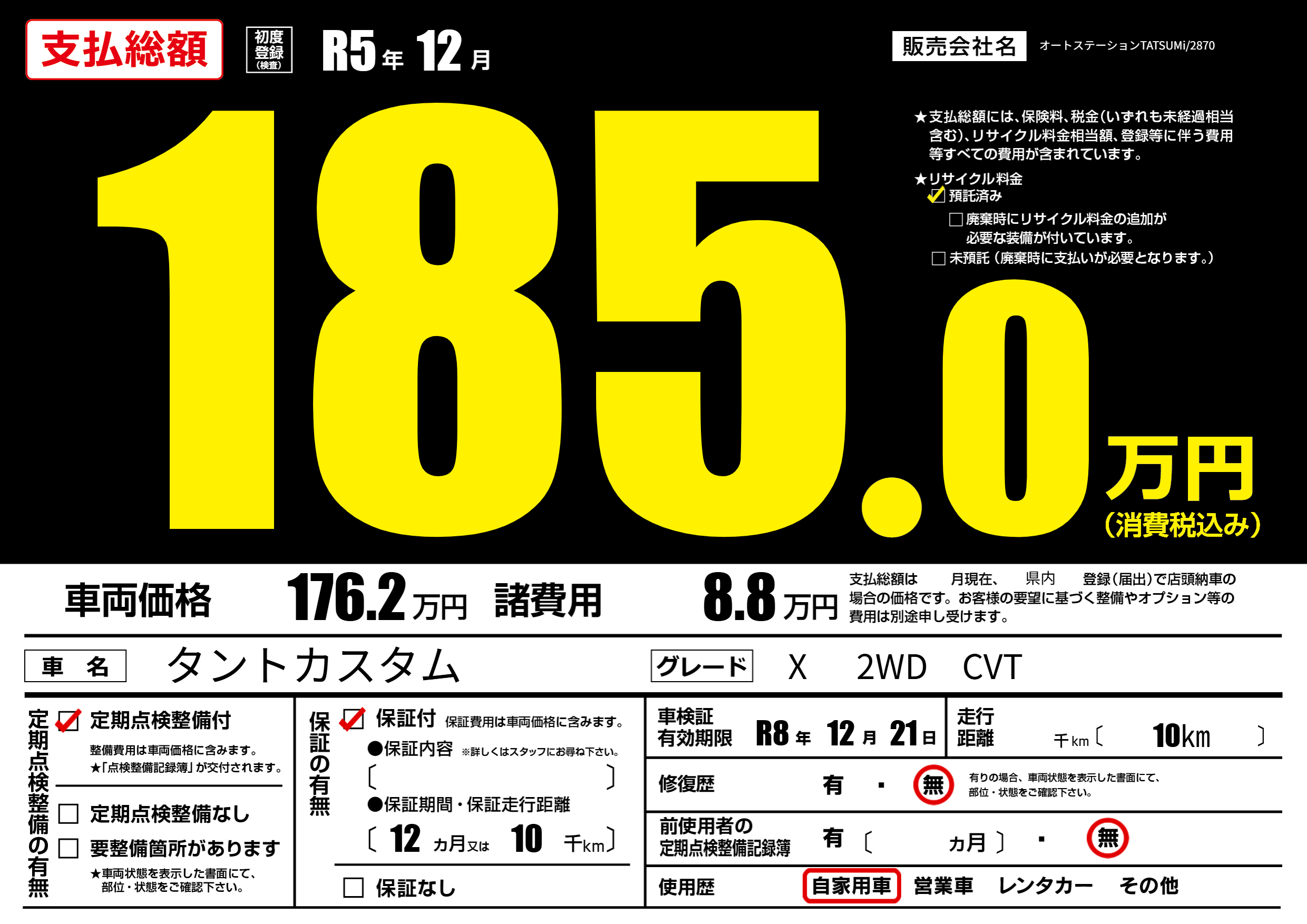 | 車名 | タントカスタム | グレード ミッション 排気量 |