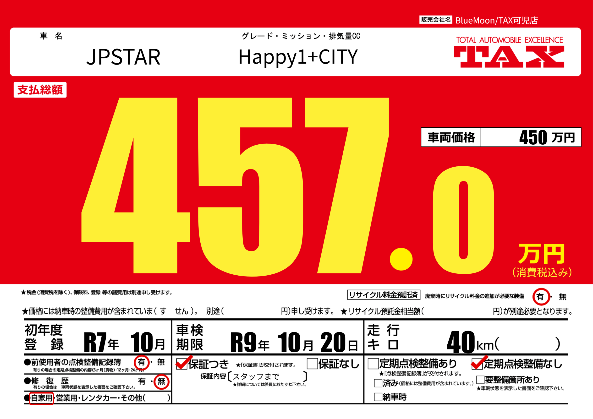 なし | 車検制限 | R9年10月20月 |