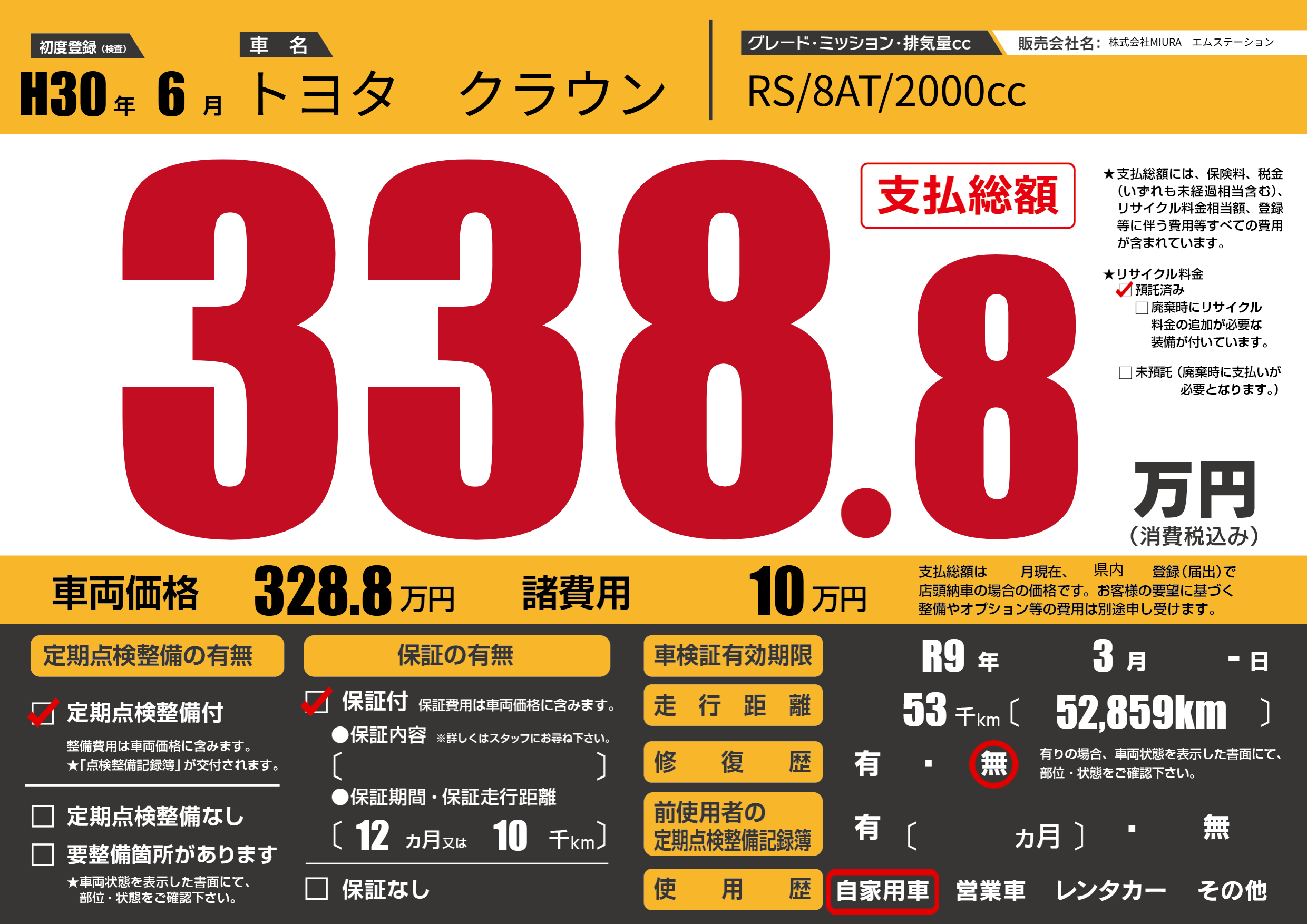 | 車検制限 | R9年 3月 -日 | ||