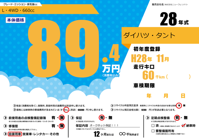 販売価格(支払い総額):- 年式:2016年 走行距離: 6万km