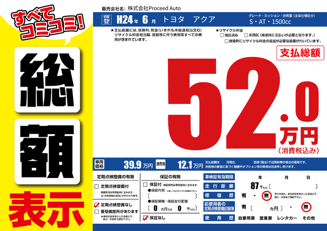 販売価格(支払い総額): 412万円 年式: - 走行距離: -