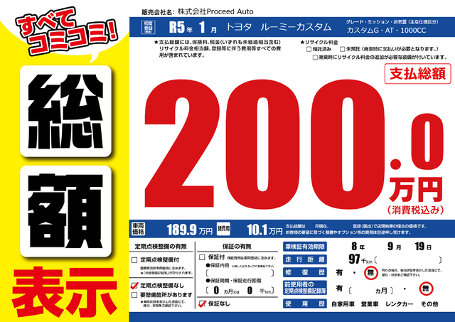 販売価格(支払い総額): 200万円 年式:2017年 走行距離: 6.2万km