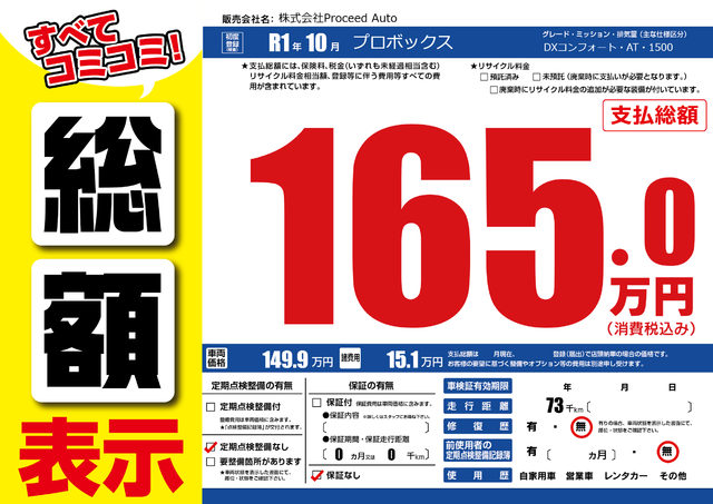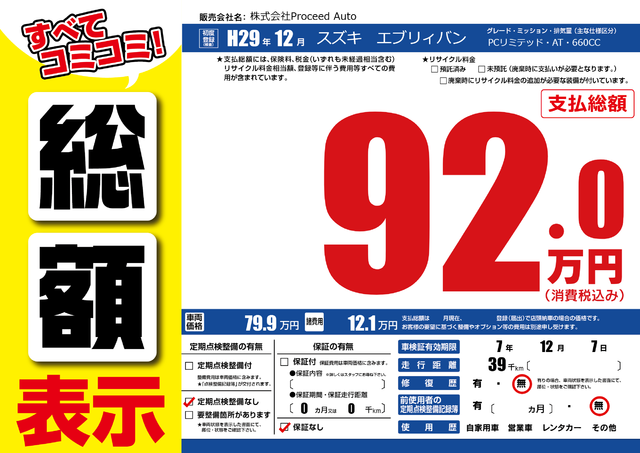 販売価格(支払い総額): 47万円 年式:2015年 走行距離: 10.1万km