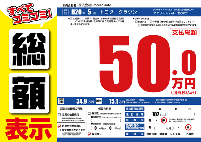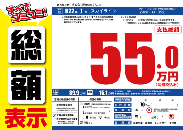 販売価格(支払い総額): 25万円 年式:2009年 走行距離: 9万km