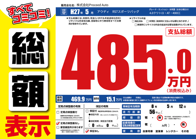 販売価格(支払い総額): 97万円 年式:2015年 走行距離: 8万km