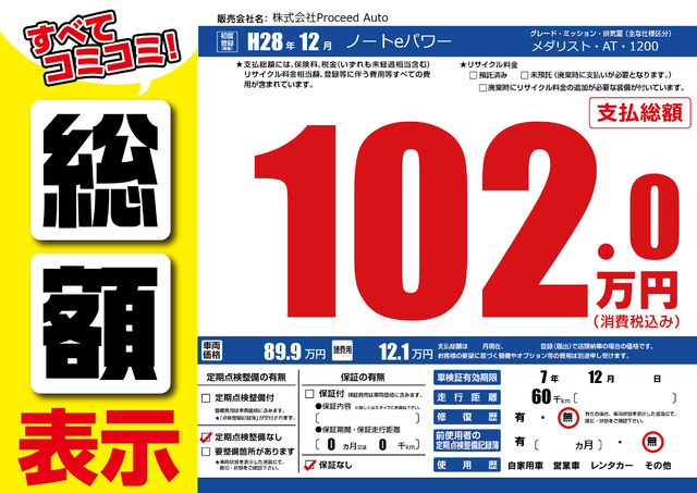 販売価格(支払い総額): 70万円 年式:2012年 走行距離: 8.9万km
