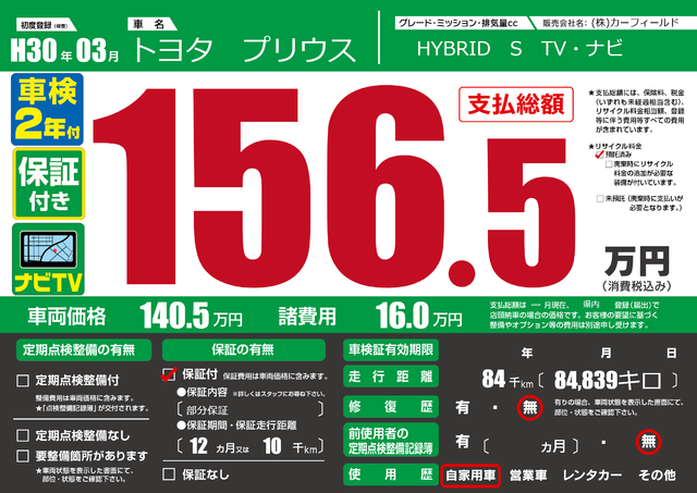 販売価格(支払い総額): 62.9万円 年式:2018年 走行距離: 10.3万km