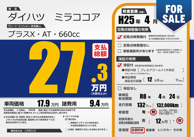 販売価格(支払い総額):169.3万円 年式: - 走行距離: -