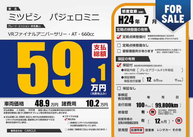 販売価格(支払い総額): 55.7万円 年式:2010年 走行距離: 9.2万km
