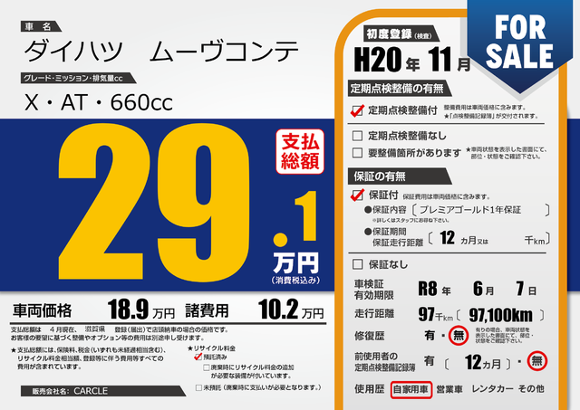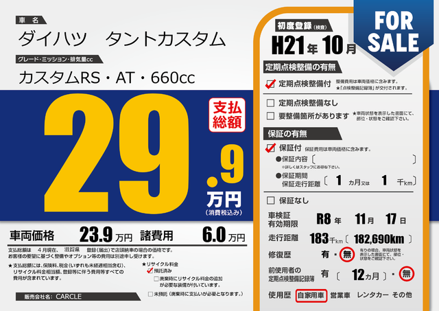 販売価格(支払い総額): 99.7万円 年式:2009年 走行距離: 10.6万km