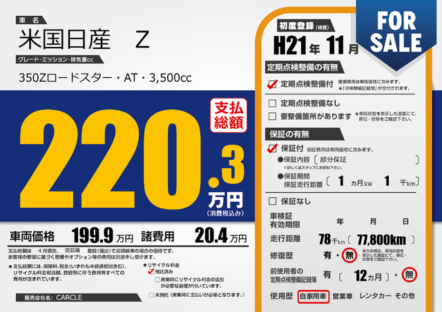 販売価格(支払い総額): 79.9万円 年式:2010年 走行距離: 1.3万km