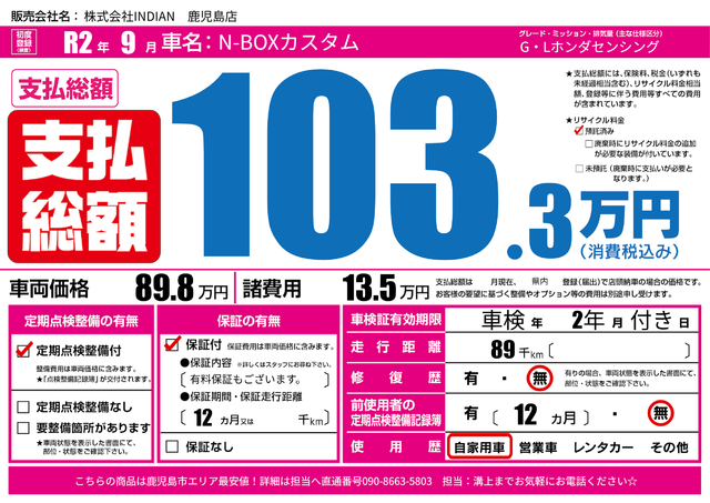 販売価格(支払い総額): 61.8万円 年式:2013年 走行距離: 10.1万km